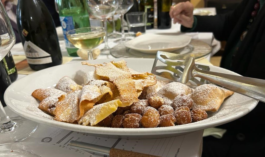 Primo simposio dell’anno organizzato alla trattoria “La Busa” di Spilamberto, con un menù tradizionalissimo definito dal Simposiarca Fabrizio Corradini per esaminare consuntivo 2022 e fare progetti per il 2023. Il tavolo diplomatico accoglie cordialmente festoso, mentre gnocchino, una divina pancetta e scaglie di Parmigiano reggiano, il re dei formaggi, accompagnati da un calice di vino, sottolineano il ben trovarsi fra loro degli Accademici. Poi tutti a tavola, punteggiando le soste tra un servito e l’altro con comunicazioni precise. Dopo un primo di maccheroni al pettine con ragù di galletto, informazioni della Delegata e del Tesoriere Giorgio Antonioni, seguito da un fantastico carrello di bolliti e arrosti accompagnati da gustosi contorni serviti a scelta individuale, completati al tavolo da salsa rossa, salsa verde e mostarda. Dulcis in fundo, carrello dei dolci con proposte irresistibili di familiari tentazioni.