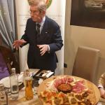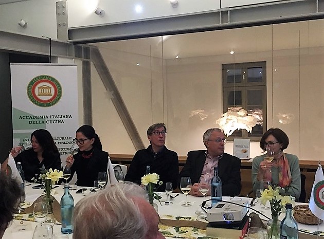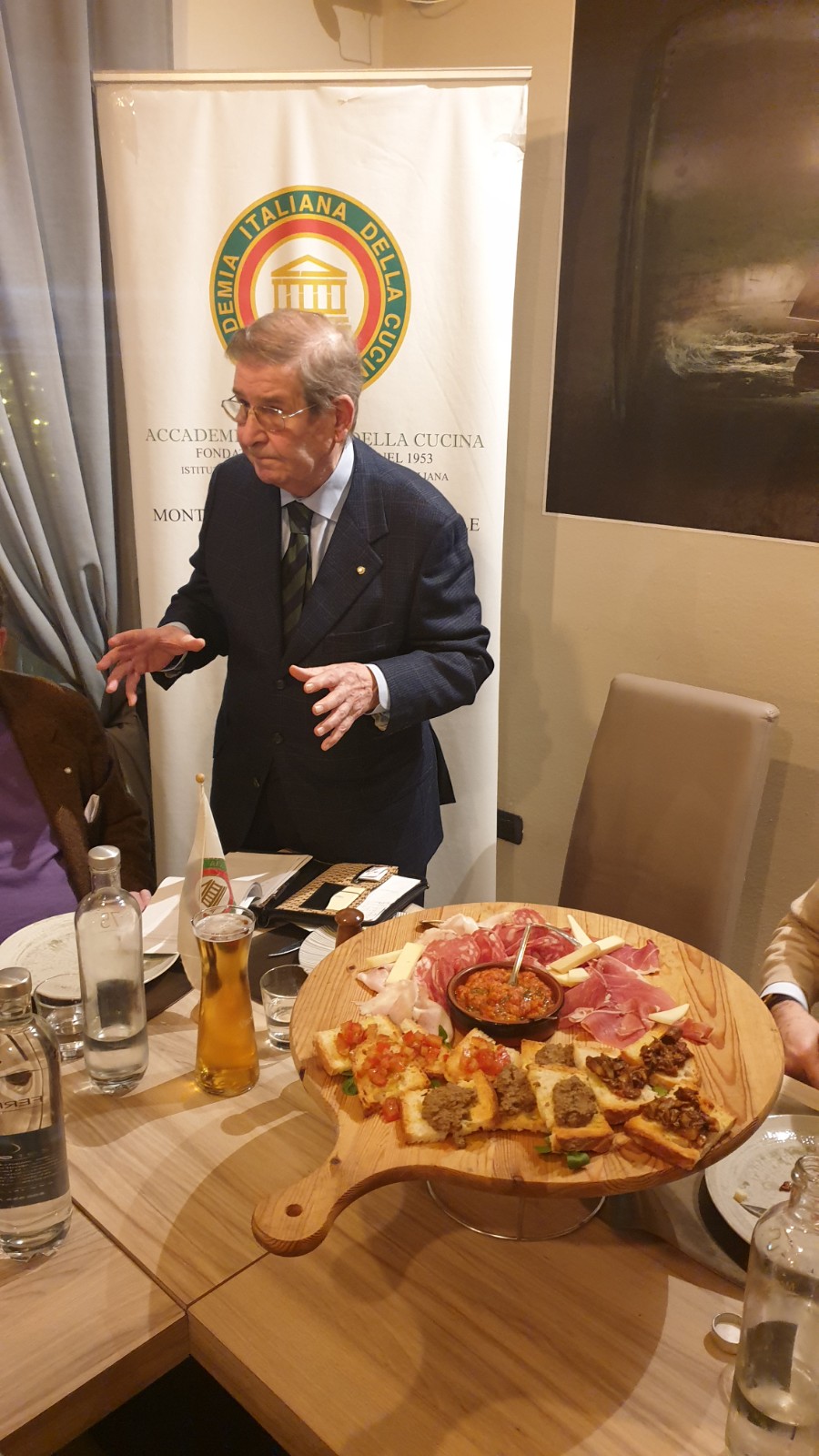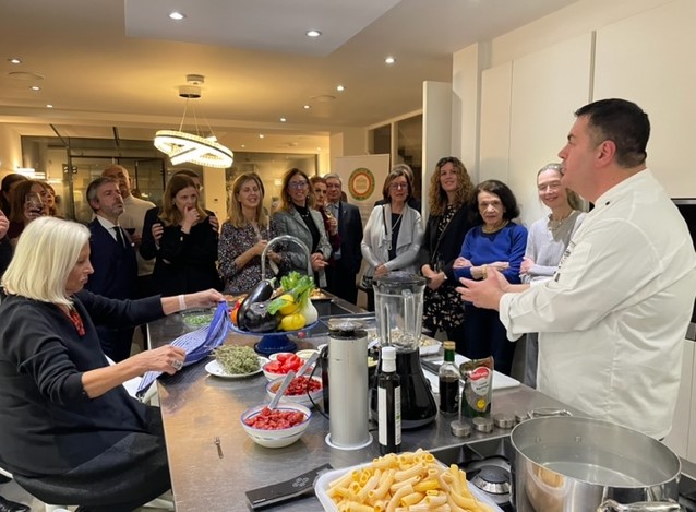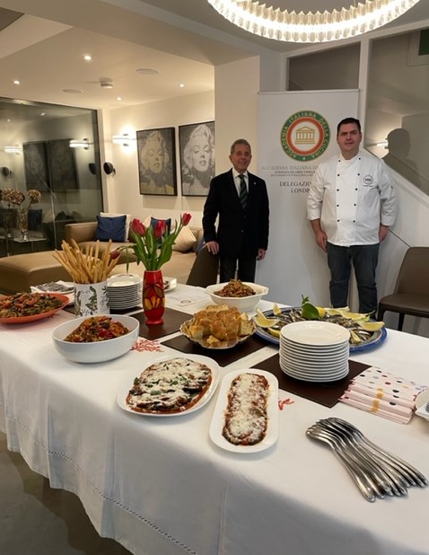 La Delegazione di Londra ha deciso di ripetere l’esperienza di alcuni anni fa offrendo agli Accademici l’opportunità di partecipare ad una "master class" esclusiva. Lo chef siracusano Carmelo Carnevale ha preparato un menu a base di specialità siciliane, offrendo anche un'interessante spiegazione sulla cucina delle Tre Valli. Ha narrato le origini storiche di alcuni piatti e come la tradizione si sia evoluta in alcune ricette che oggi tengono conto di prodotti tipici del territorio. La serata, esclusivamente riservata a una quarantina di Accademici, è iniziata con un aperitivo di sfincione e panelle accompagnato da Prosecco millesimato. Lo chef, sotto lo sguardo attento dei partecipanti, ha realizzato con la collaborazione straordinaria di alcuni soci volenterosi ed entusiasti, rigatoni con pesto invernale alla Norma, un piatto servito caldo in aggiunta al ricco buffet preparato in precedenza dallo chef. Tra le portate, apprezzatissima la caponata bianca, il tortino di sarde a beccafico e la parmigiana di melanzane non infornata. Come dessert i famosi cannoli di ricotta. Queste delizie sono state accompagnate da vini adeguati, bianco, rosso e moscato dolce. Grande divertimento e convivialità da parte dei presenti che hanno applaudito più volte lo chef Carmelo, apprezzandone anche la simpatia e disponibilità.