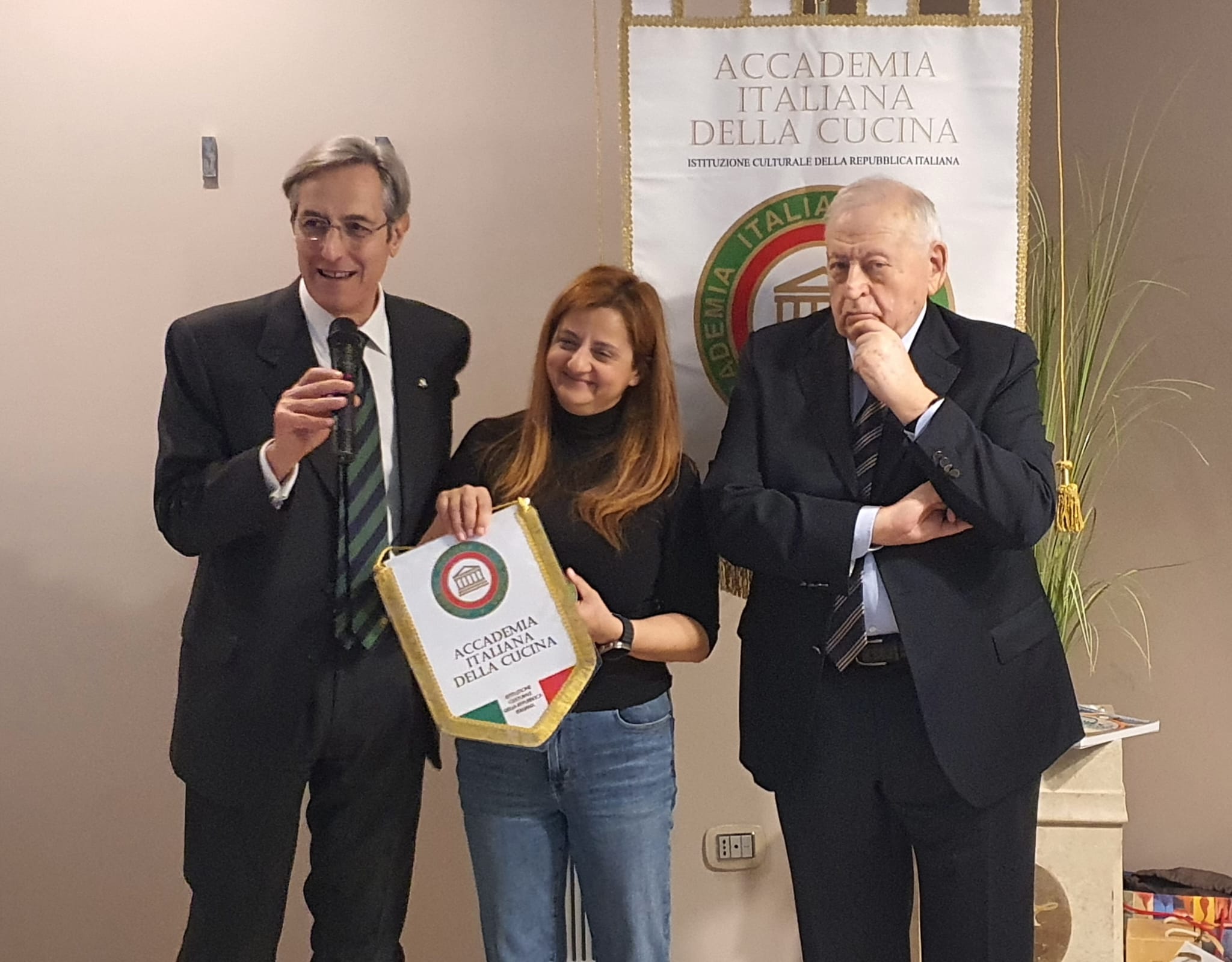 La riunione conviviale di Carnevale della Delegazione di Cosenza ha costituito l’occasione per riannodare i fili che legano cultura e tradizioni popolari grazie ad usanze tramandate nel tempo. Ricca di colte e stimolanti curiosità la relazione dell’Accademico Simposiarca Oreste Morcavallo (foto 1) molto apprezzata ed applaudita dai numerosi Accademici presenti (foto 2). Piatti molto ben realizzati e presentati dalla cucina (foto 3), in magnifico abbinamento con i vini di Terre del Gufo della vicina Donnici. Alla titolare Flora Fabiano la consegna del Guidoncino ad opera del Delegato Rosario Branda e del Vice Delegato Pietro Vivona (foto 4.)