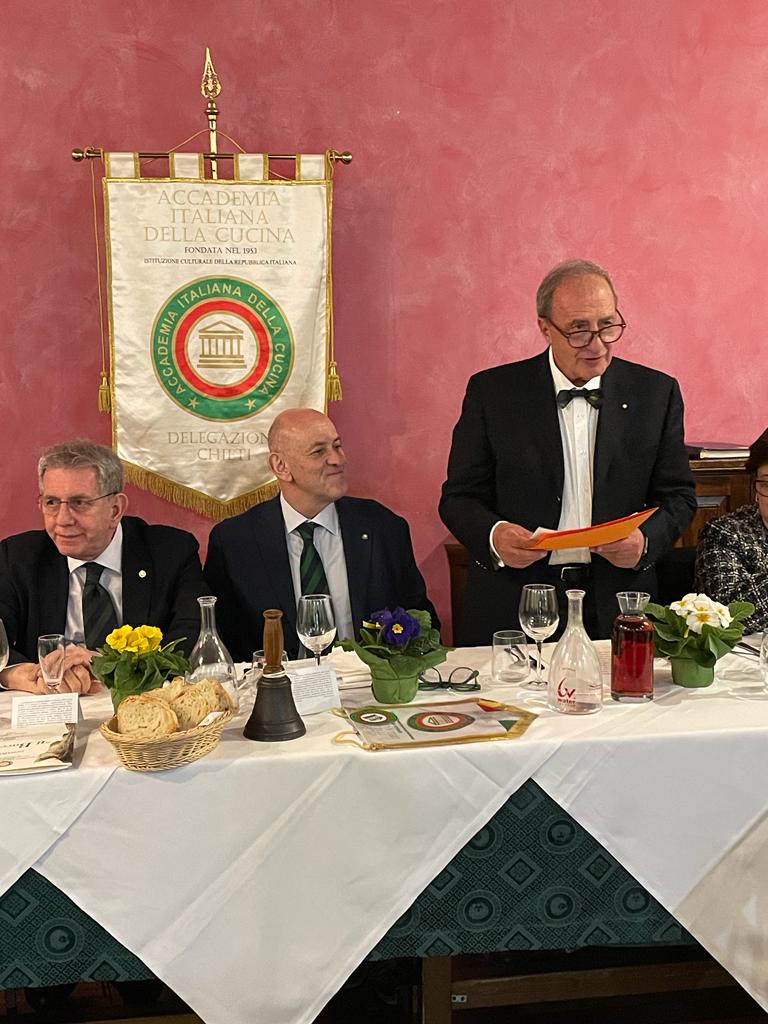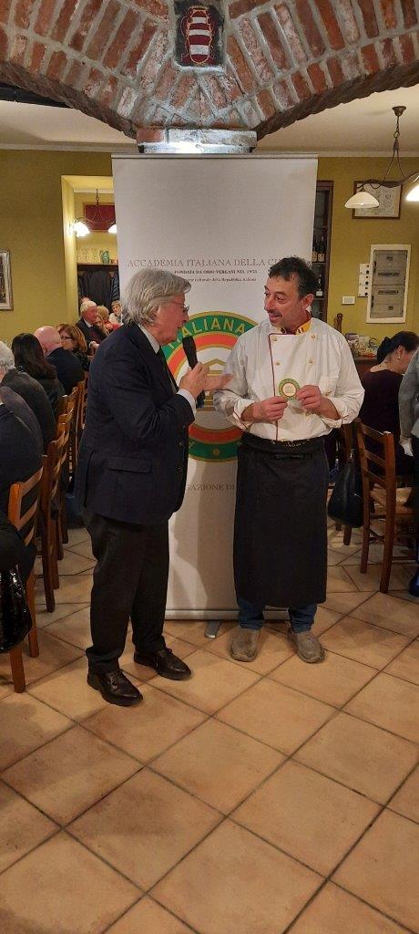 Prima riunione conviviale dell'anno per gli Accademici di Alessandria che si sono ritrovati presso il ristorante "La Fermata" di Spinetta Marengo (foto 1). Il Presidente Paolo Petroni, eccezionalmente presente in questa occasione, ha consegnato la campana accademica al nuovo Delegato Matteo Pastorino (foto 2) nominato a seguito della scomparsa del Delegato Luigi Bussolino in ricordo del quale il Presidente ha pronunciato parole di stima. A celebrare questo importante e significativo momento per la Delegazione erano presenti, oltre al Presidente Petroni, il Coordinatore Territoriale del Piemonte Est Piero Spaini, il Direttore del Centro Studi Territoriale nonché Segretario del Centro Studi F. Marenghi Elisabetta Cocito, L’Assessore Regionale all’agricoltura e cibo Marco Protopapa (foto 3) oltre ai Delegati di Biella, Vercelli e del Monferrato. Il nuovo Delegato ha poi illustrato i principali focus su cui verteranno le future iniziative della Delegazione e presentato i membri del Consulta: i due Vice Delegati Adriano Benzi e Giorgio Borsino, il Tesoriere Carlo Bajardi, il Segretario Pio Bavastro e il Consultore Giovanni Costa. Serata impreziosita dall’ingresso di tre nuovi Accademici, Giacomo Guerrina, Gabriele Fabian e Luisella Vassallo insigniti direttamente dal Presidente Petroni (foto 4) che, al termine della raffinata cena, ha parlato dell'importanza del ruolo dell’Accademia per tutelare le tradizioni dei prodotti e della cucina italiana.