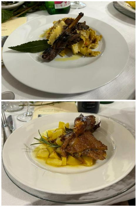 Grandissimo successo per il convivio d'Inverno "tra caccia e cortile" tenutosi all’agriturismo Valgrande, più volte frequentato dalla Delegazione sempre con grande soddisfazione. In questa occasione la signora Monica ha superato le aspettative con un menu perfetto, dall'antipasto al dessert, e tutti i piatti hanno avuto valutazioni altissime a partire dalla splendida anitra al forno sugli scudi, seguita dalle pappardelle e dai dolcetti di Carnevale che hanno chiuso più che degnamente un pranzo memorabile. Ottimi i vini, servizio pronto e cordiale, calorosa accoglienza e un ottimo rapporto qualità-prezzo. Meritatissimi quindi gli applausi finali.