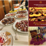 La Delegazione di Fermo ha celebrato il Carnevale presso le ampie sale dell’hotel il Timone di Porto San Giorgio esclusivamente riservate e debitamente addobbate per l’occasione. Le Simposiarche Anna Maria Ciciretti, Maura Raccichini e Nadia Zacchi (foto 1 con Delegato Torresi), con gran fervore hanno predisposto al meglio un evento incentrato sulle tradizioni locali a tavola senza però trascurare l’aspetto culturale e quello di gioiosa festa. Dopo i saluti del Delegato ai numerosissimi ospiti (foto 2), le Simposiarche si sono alternate in relazioni che hanno esplorato le tradizioni nel fermano per la festa, la storia, il folklore e la gastronomia ma anche la poesia in vernacolo. Di interesse anche la presentazione della maschera Mengone Torcicolli e della sua Lisetta. A Carnevale, si sa, le padelle fan fracasso (il rumore doveva svegliare il sole sopito dall’inverno) e le più tipiche preparazioni che riguardano per lo più i dolci e le fritture in genere sono state prima raccontate dalle Simposiarche e poi realizzate in un ricchissimo buffet con generale apprezzamento dei convenuti (foto 3 i dolci). Molto gradita la polenta al ragù di maiale, i maccheroncini e le fritture. Ringraziamenti del Delegato a Gianni Lamponi, patron della struttura, che ha seguito nei dettagli l’organizzazione dell’evento (foto 4). Una serata all’insegna della cultura, del buon cibo e del divertimento predisposta per soddisfare tutti i palati.