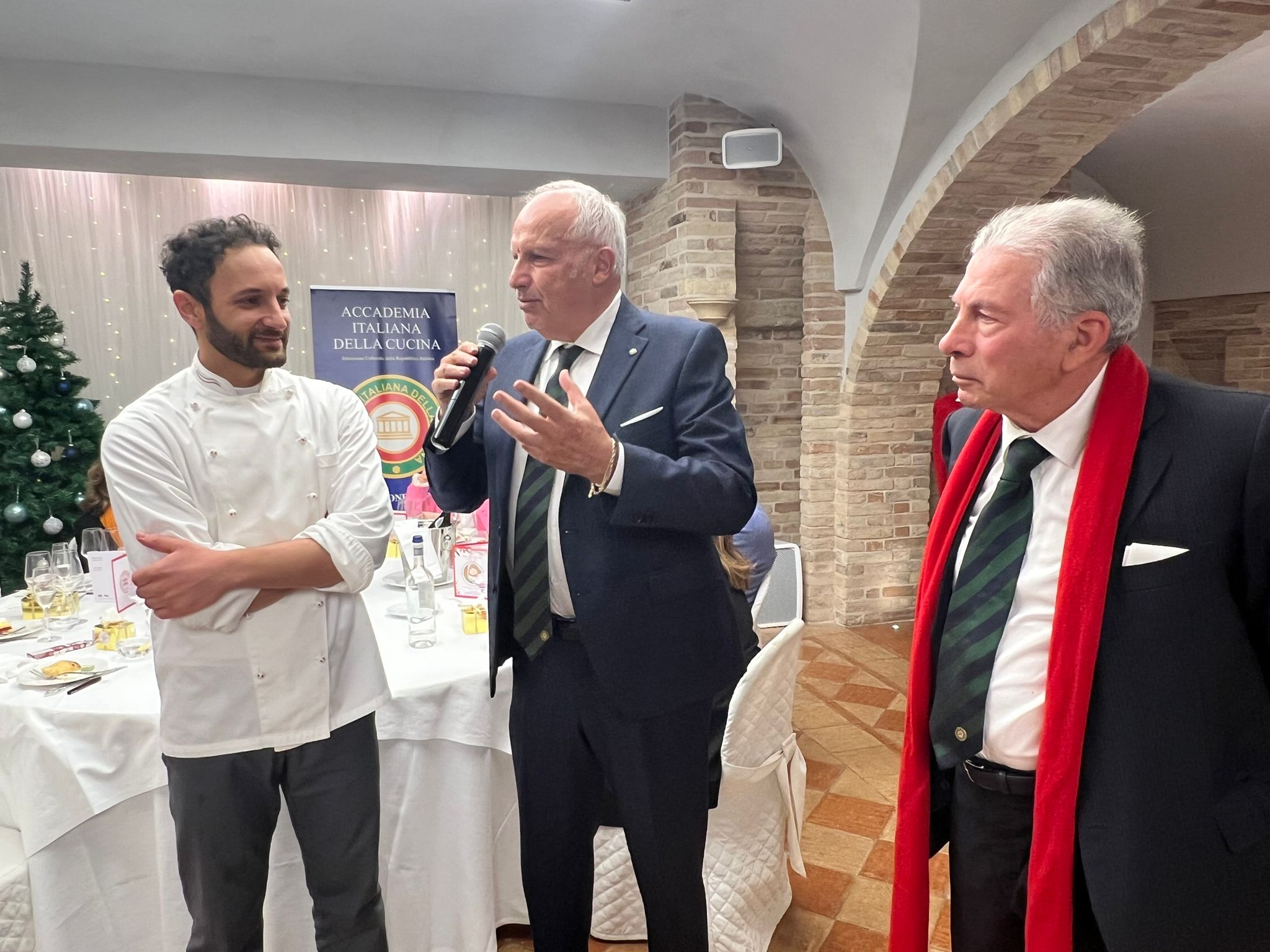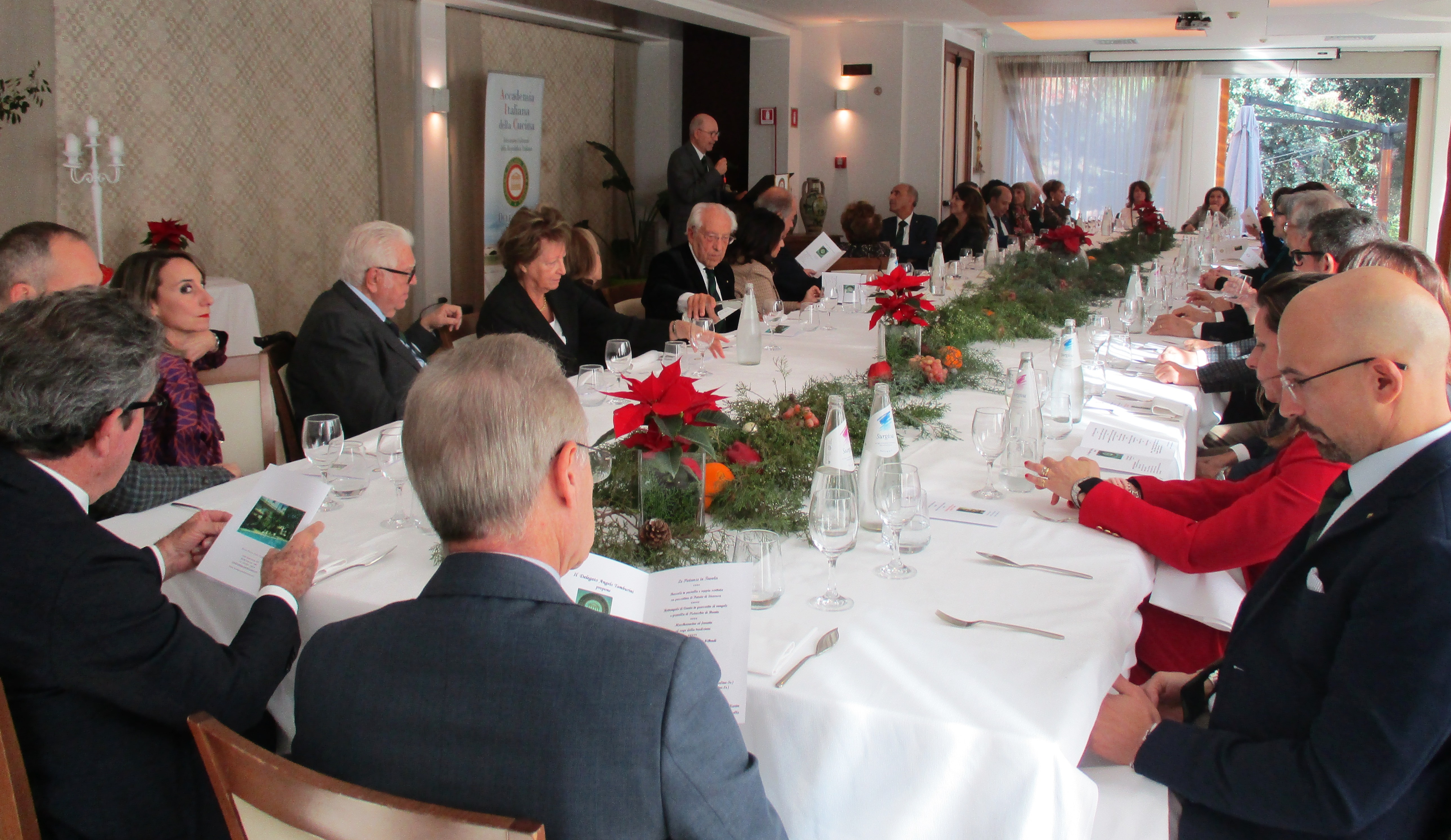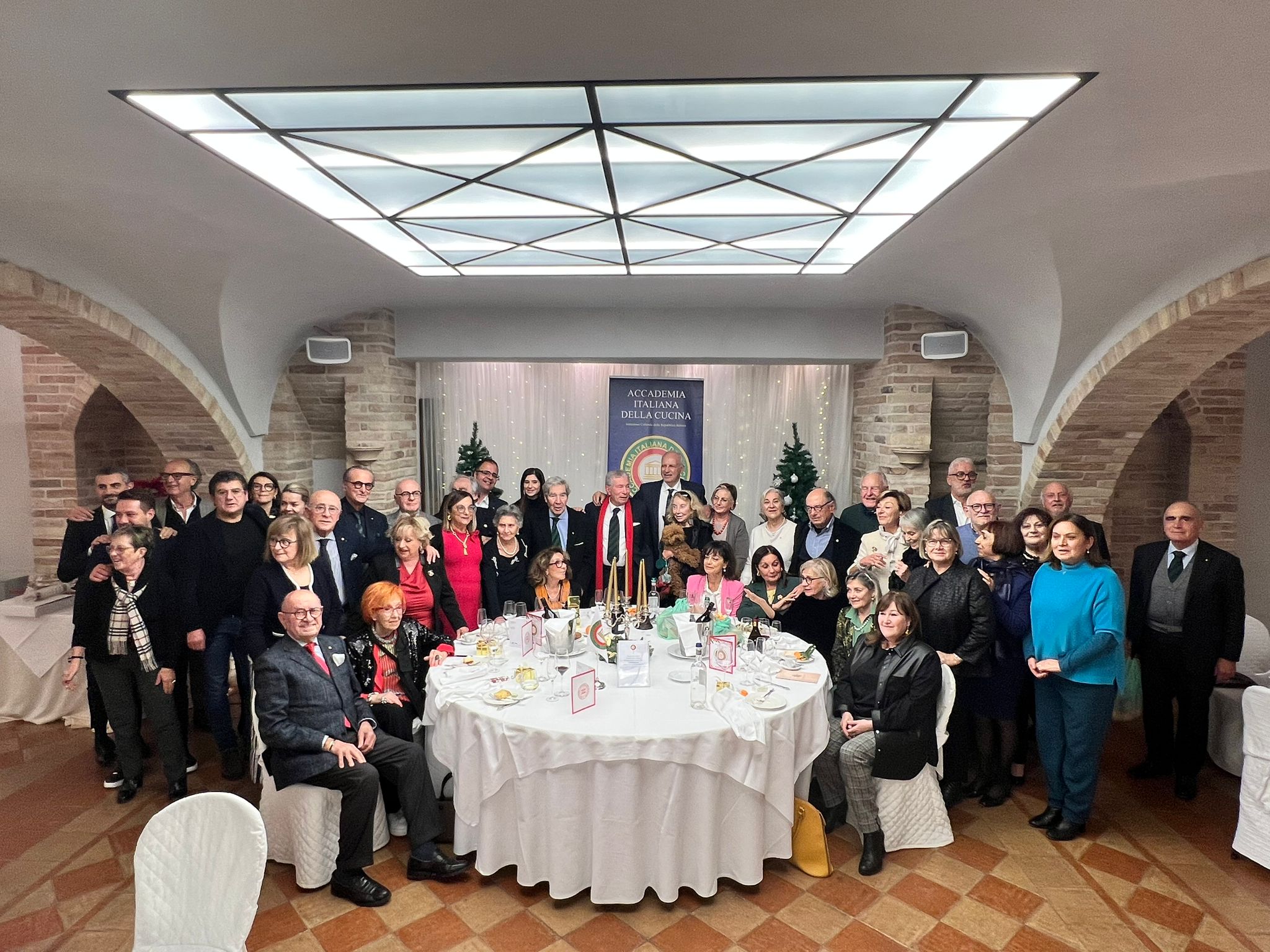 Partecipatissima conviviale degli auguri nelle sale voltate di villa il Cannone sita a Marina Palmense di Fermo, nota per aver ospitato per i primi mesi dopo il matrimonio Gabriele D'Annunzio. Il Simposiarca Cristofaro La Corte, avvalendosi del giovane cuoco Marco Squarcia, ha deliziato i convenuti con un ricco menù della tradizione natalizia del fermano impreziosito con l’omaggio di cannoli della sua Sicilia. In un clima gioioso e di vera festa sono stati accolti tre nuovi Accademici: Paolo Acciarri, Francesco Marsili e Annalina Marziali. Il dopopranzo è stato animato dallo scambio di auguri e doni a conclusione di una splendida giornata ove palpabile era lo spirito di vera amicizia e convivialità in un calore tutto natalizio.