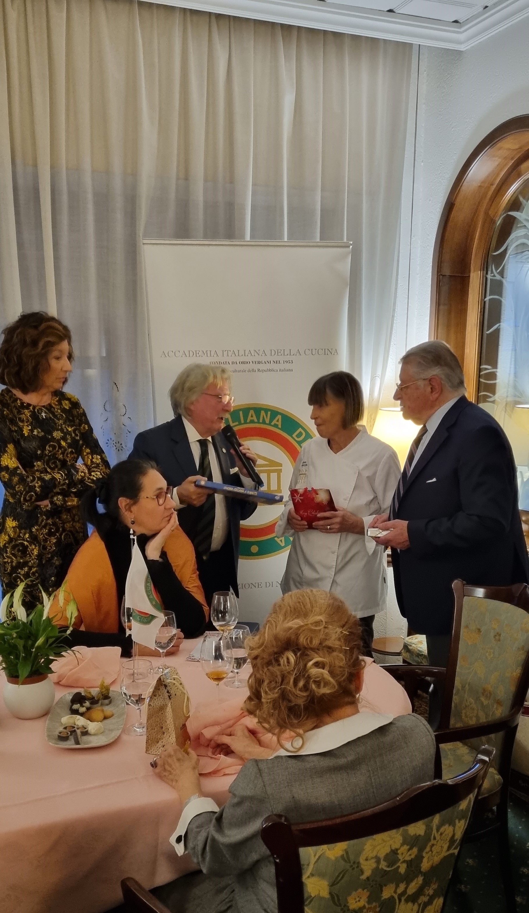 Ultimo appuntamento dell’anno a Tel Aviv, organizzato al ristorante Pankina di Scialom Zarrugh che ha ricevuto, in questa speciale occasione, il premio Giovanni Nuvoletti 2022 (il proprietario Zarrugh in foto 1 con la Delegata Cinzia Klein). Il menu scelto per la conviviale è stato molto ricco e caratterizzato da elementi ebraici italiani kosher (foto 2). Alla serata hanno partecipato tutti gli Accademici e molti funzionari dell'Ambasciata italiana in Israele (foto 3 Accademici e ospiti). Durante il convivio è stata insignita la nuova Accademica Tiziana Caldelli che ha ricevute le insegne dell’Accademia (in foto 4 con il marito Colonnello Gioacchino Violante).