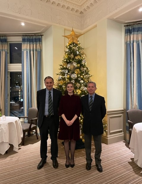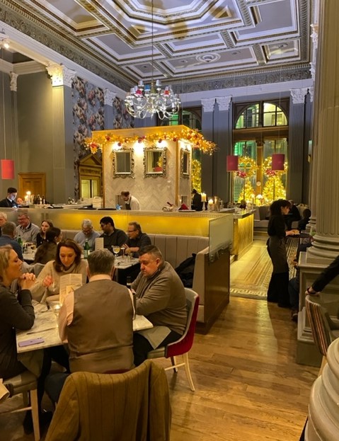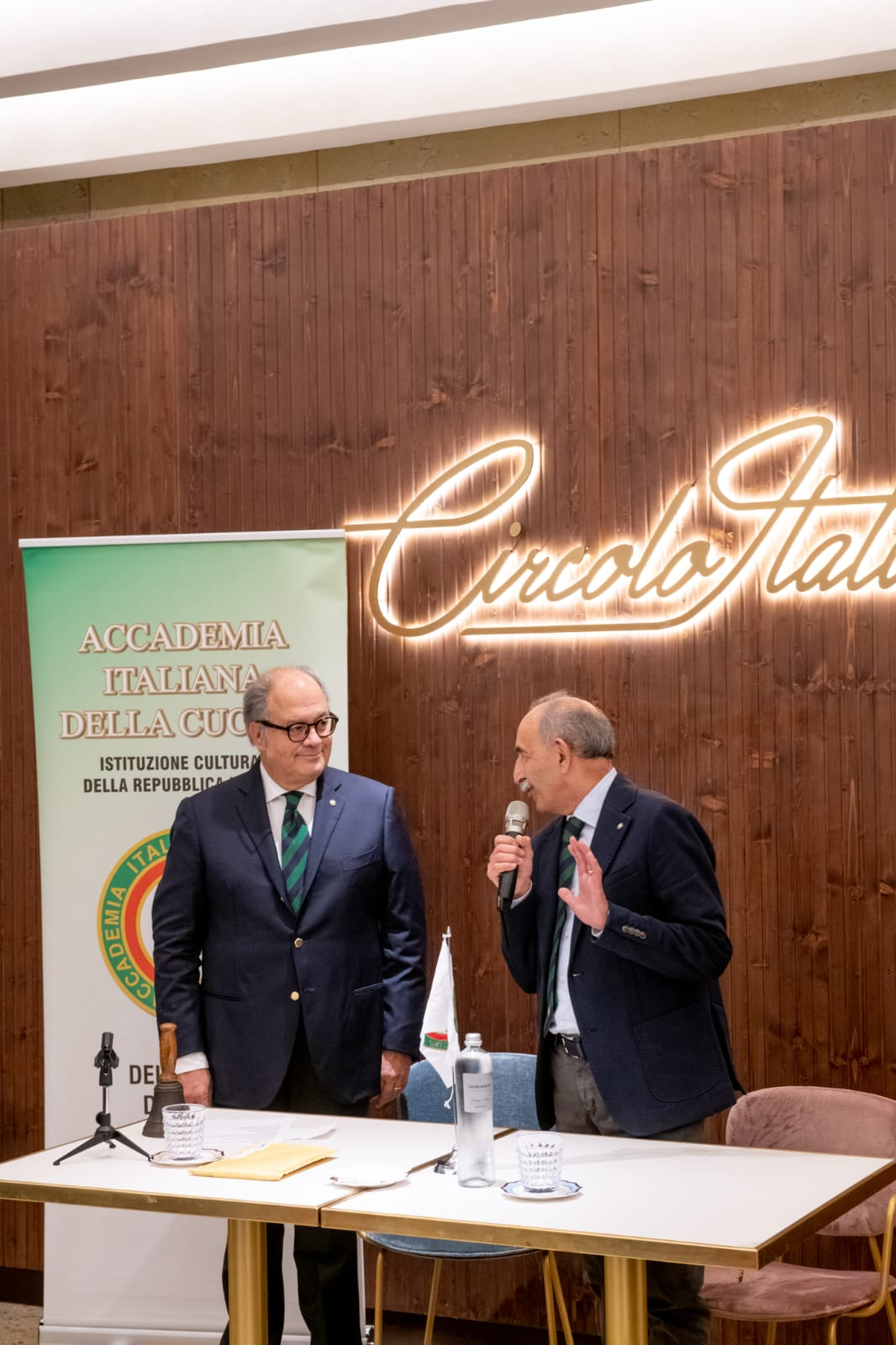 I giorni 6 e 7 dicembre il vice Presidente dell’Accademia e Delegato di Londra, Maurizio Fazzari, si è recato a Edimburgo dove, assieme al Legato di Glasgow, Michael Pagliari, ha partecipato al ricevimento presso gli splendidi locali del Balmoral Hotel (Rocco Forte Hotels) in onore del nuovo Console Generale per Scozia e Irlanda del Nord, Veronica Ferrucci. Presenti all'evento anche il Console Onorario di Glasgow, Ronnie Convery, il Console Onorario di Aberdeen, Federico Porrera, la direttrice dell'Istituto Italiano di Cultura di Edimburgo, Chiara Avanzato, la responsabile della Camera di Commercio Italiana in Scozia, Carolina Ghittino, oltre a funzionari della Rocco Forte Hotels in rappresentanza di Sir Rocco. Maurizio Fazzari e Michael Pagliari si sono intrattenuti a lungo con gli ospiti, ricordando la presenza dell'Accademia sul territorio UK e confermando l'importanza della Scozia, sia per le sue grandi tradizioni sia per la folta presenza dei nostri connazionali. Il vice Presidente e il Legato hanno fatto omaggio al Console Generale di una copia del libro "Storia della Cucina Italiana a fumetti", anticipando l'uscita del volume in lingua inglese; il Console Generale ha assicurato la sua cooperazione per la diffusione dell'opera in forma adeguata alla sua importanza. La serata si è poi conclusa con la visita al ristorante Contini, gestito dalla famiglia Contini, proprietaria di altri locali in città e punto di riferimento della ristorazione italiana.