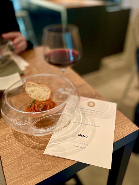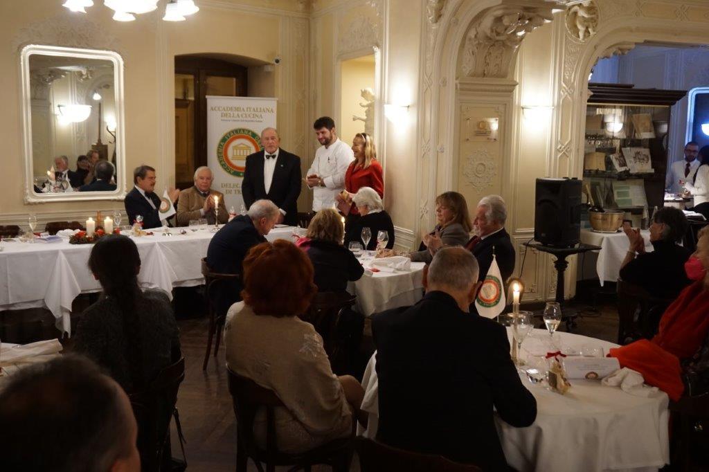 Martedì 6 dicembre si è svolta la riunione conviviale degli auguri presso il ristorante Righi-Casa Sartini nel cuore del centro storico di San Marino. Lo chef Luigi Sartini ha accolto gli Accademici con un menu che conferma tutte le sue esperienze, la conoscenza della tradizione e del territorio, l’amore per il suo lavoro e la fantasia dei piatti, ingredienti necessari per reinterpretare ogni giorno la sua cucina ed esaltarne i pregi. Bellissima serata con gli auguri per le feste che il Delegato ha rivolto ai presenti anticipando alcune proposte per il 2023, in un'atmosfera di amicizia e cordialità, testimonianza del piacere di ritrovarsi.