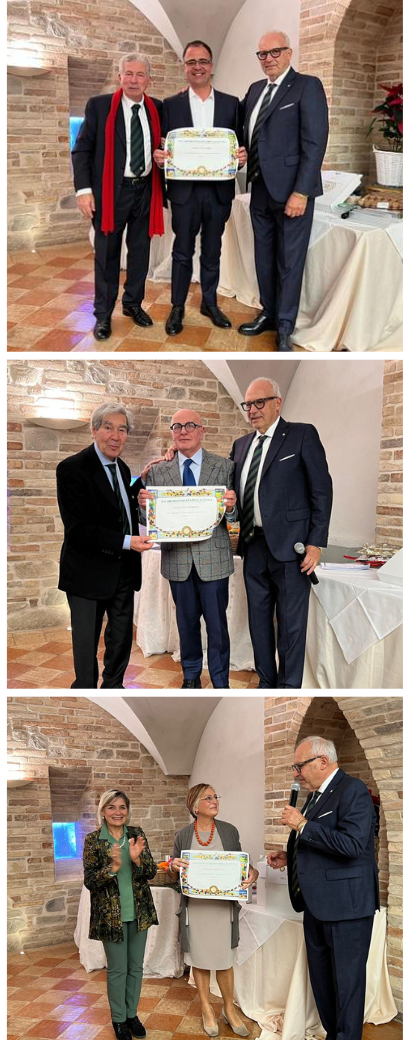Partecipata riunione conviviale degli auguri presso il ristorante Clemente a Sulmona, insignito del Premio Giovanni Nuvoletti nell’anno 2021. Numerosi ospiti riuniti in un’atmosfera di amicizia e cordialità in una sala addobbata per le feste natalizie, il tutto accompagnato da ottimo cibo. Foto 1. Il Delegato Giovanni Maria D'Amario introduce la serata. Foto 2. La Simposiarca Fulvia Petrella espone il menu; Accademica Chiara Buccini parla delle tradizioni natalizie locali. Foto 3. La Vice Delegata Carmela Petrucci relaziona sulle attività svolte nell’anno 2022. Foto 4. Capocollo con zucca marinata, melograno, misticanza e Mostocotto; gli " Agnellotti".