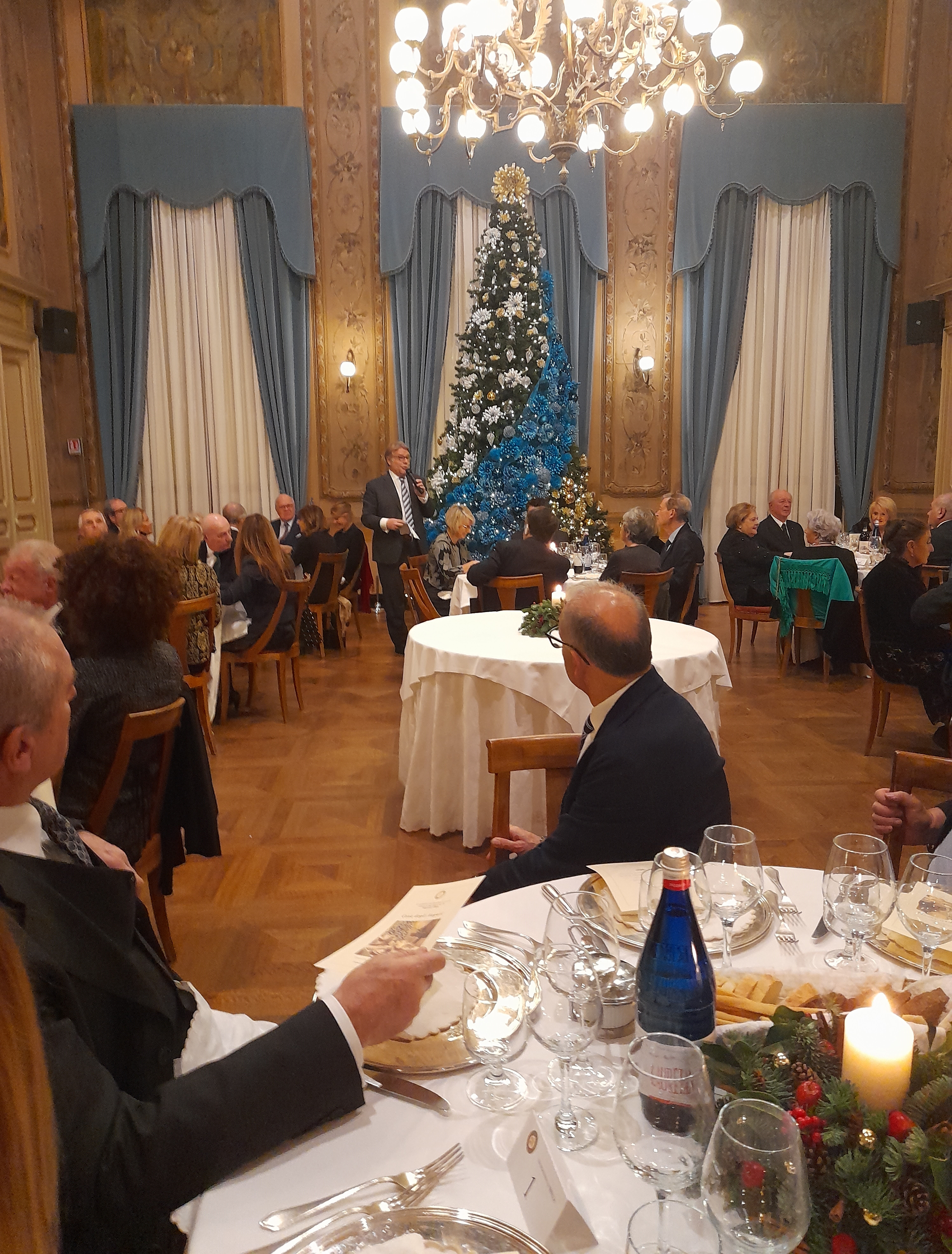 Anche quest’anno la Delegazione ha rinnovato la tradizione della “Conviviale degli Auguri 2022” presso il prestigioso Grand Hotel Royal Corinthia. Un appuntamento ormai consolidato che rappresenta la sempre attesa occasione di eleganza “all’italiana” per lo scambio degli auguri e per trascorrere una piacevole serata in una affascinante atmosfera natalizia. La Conviviale ha richiamato una partecipazione senza precedenti di Accademici e ospiti, tra i quali S.E Manuel Jacoangeli Ambasciatore d’Italia, S.E Michael Banach Nunzio Apostolico, il Rappresentante Permanente della Santa Sede presso l’OSCE di Vienna, Rev.do Mons. Janusz Urbanczyk ed il Console Onorario di Ungheria a Verona, Prof. Lajos Pinter. Nel corso dei tradizionali discorsi di saluto, il Delegato Michele Fasciano ha ripercorso le tappe più significative delle attività svolte nel corso del 2022 e, durante la serata, sono stati insigniti i nuovi Accademici Adriano Di Nicolò, Silvia Merighi e Armando Salierno. La serata ha riscosso un enorme successo grazie anche alla collaborazione sempre preziosa della Vice Delegata Maria Carmela Gaetani Aronica e di tutto lo staff dell’hotel sempre disponibile e cordiale.