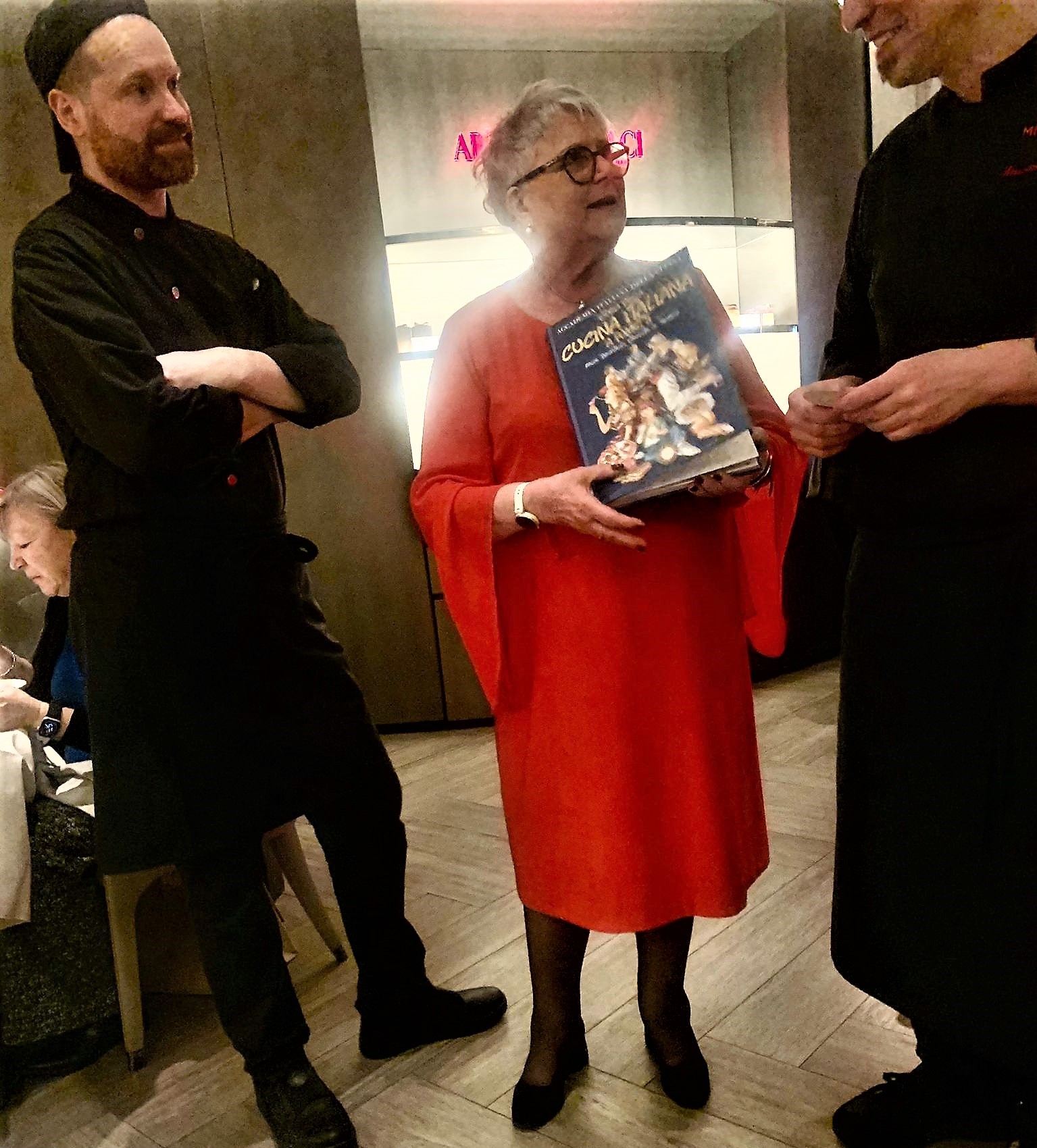 Eccezionale pranzo di Natale in uno dei ristoranti che hanno fatto la storia della eccellenza della ristorazione italiana degli ultimi 40 anni. Luisa Valazza ha preparato un pranzo elegantissimo, con materie prime straordinarie trattate con cura e rispetto. Il patron Angelo Valazza ha gestito la sala dall’alto della sua esperienza maturata nei più importanti hotel d’Europa. Il ristorante è al vertice dalla sua nascita nel 1981 e mantiene un livello elevatissimo. È stato un piacere per tutti gli Accademici sedersi agli eleganti tavoli ad ascoltare la storia dei piatti narrata da Elisabetta Cocito mentre il Delegato Spaini ha parlato dei vecchi ricordi e degli esordi di Valazza nella professione al ristorante Europa a Borgomanero negli anni ’70. Foto 1. Un momento conviviale. Foto 2. Consegna del volume “Cucina Italiana a fumetti” a Luisa e Angelo Valazza. Foto 3. Menu. Foto 4. Capesante, passata di carciofi e parmigiano, castagne e chips di rape rosse; riso Carnaroli con zucca, topinambur, gorgonzola dolce e noci; Morbidone con cardi gobbi gratinati al dragoncello.