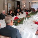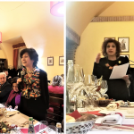 Il Circolo Sociale Biellese ha ospitato il convivio degli auguri della Delegazione di Biella. È stata una serata organizzata all’insegna della tradizione natalizia e dell’eleganza, con addobbi, candele accese e tavole decorate. Anche il menu proposto dal cuoco Elion Keci, gestore del Circolo, richiamava la tradizione piemontese: un classico aperitivo, paté di selvaggina, ravioli ai tre arrosti, faraona ripiena, panettone con zabaione. Bell’atmosfera di convivialità e di chiacchere tra i numerosi Accademici presenti e i loro ospiti, tra cui il Procuratore Capo della Repubblica di stanza a Biella Teresa Angela Camelio accompagnata dal consorte Accademico di Pisa, Massimo Messina, il Delegato di Ivrea, Maurizio Rossi, e la vice Delegata del Monferrato Alessandra Bellaria. La serata si è conclusa con un brindisi e i ringraziamenti al cuoco del Circolo. 1.Tavolo con Delegata Bertotto, il Delegato di Ivrea e la vice Delegata del Monferrato. 2. Visione della sala con l’Accademico Meliga mentre illustra i vini. 3. Delegata Bertotto e Chef Elion Keci illustrano il menu. Foto 4. Chef Elion Keci serve lo zabaione.