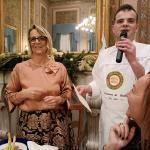 La Delegazione si è riunita presso l’Emporio Armani Caffè sito nel rinomato quartiere latino della capitale francese. Lo chef Massimo Tringali ha proposto un menu ricco di sapori che rispecchiava le tradizioni natalizie del Nord Italia, preparato con cura e utilizzando prodotti del territorio. Ottimi gli abbinamenti dei vini. Il servizio di sala si è contraddistinto per la grande cortesia e disponibilità. Durante la serata, il Vice Delegato Gian Paolo Cossu è intervenuto magistralmente spiegando ai presenti l’importanza e il rispetto delle tradizioni regionali italiane durante le feste natalizie, descrivendo con dovizia di particolari alcune ricette particolari, facendo intervenire gli Accademici con i loro ricordi d’infanzia. Si è avuto l’onore della presenza dell’Onorevole, Ministra già alla cultura francese, Aurelie Filippetti, italiana e fresca di nomina agli affari culturali presso la “Mairie de Paris”, che ha sottolineato quanto sia intenso il suo legame con l’Italia. La riunione conviviale si è conclusa con i ringraziamenti allo chef e a tutta la squadra e con la consegna del volume “Storia della cucina italiana a fumetti”.