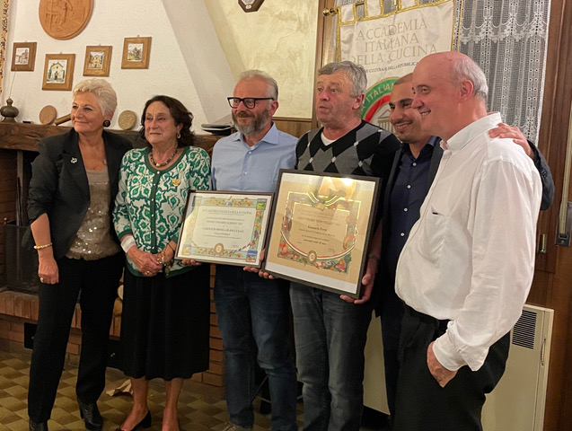 Nella suggestiva cornice dell’Agriturismo Il Farneto, a cavallo tra il comune di Castel San Pietro Terme e quello di Monterenzio, si è tenuta la riunione conviviale della Delegazione locale in occasione della quale è stato conferito alla titolare Marisa il prestigioso “Premio Massimo Alberini”, intitolato al giornalista e storico della gastronomia, assegnato a quelle attività che da lungo tempo, e con qualità costante, offrono al pubblico alimenti di produzione propria, lavorati artigianalmente con ingredienti di qualità eccellente e tecniche rispettose della tradizione del territorio, del codice etico e delle norme vigenti, a cui fa il paio un altro riconoscimento consegnato dal Sindaco di Monterenzio, Ivan Mantovani. Emozionata dai premi ricevuti, la famiglia proprietaria dello storico agriturismo, ha ripagato pienamente la stima ricevuto, portando sulla tavola piatti realizzati interamente con materia prima a filiera cortissima, proveniente dal loro macello, dal loro caseificio e dai loro campi. Una serata promossa a pieni voti da tutti i presenti.