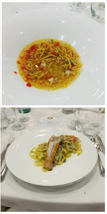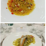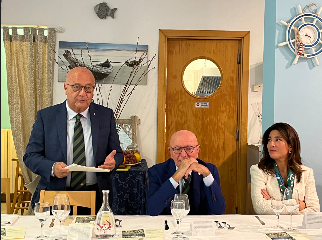 Ventennale della Delegazione Riccione-Cattolica celebrato con il convegno, aperto al pubblico, “L’Adriatico Marchigiano-Romagnolo. Storia ed attualità del pescato. La Molluschicoltura”. Relatori, il Delegato onorario Corrado Piccinetti e il dott. Giuseppe Prioli (in foto 1 con il Delegato F. Giavolucci). La Delegazione ha partecipato al gran completo. Presenti i Delegati della Romagna (foto 2): A. Gaddoni (Imola), D. Rossi (Ravenna), L. Bartolotti (Rimini), C. Cavani (Cesena), L. Camprini (Forlì), F. Monducci (Lugo di Romagna), D. Vecchione (Castel del Rio-Firenzuola). Tra gli Accademici in visita, la inaspettata presenza di Mauro Parodi dalla Delegazione del Principato di Monaco. Gli argomenti, trattati con professionalità ed oratoria eccellente, hanno destato grande interesse e numerose e pertinenti sono state le domande del pubblico. La giornata dei lavori è terminata con la riunione conviviale, con un menu a base di prodotti ittici rigorosamente di stagione e provenienti dal mare antistante Riccione e Cattolica. La qualità del pescato è stata ottima, i piatti semplici ma squisiti, profumati e appetitosi come si conviene con il pescato dell’Adriatico Romagnolo. Su tutti hanno svettato i passatellini in brodo di pesce e il tortino di canocchie all’olio e maionese, ma anche i tagliolini vongole, calamari e gamberi e la seppia con i piselli (piatti in foto 3 e 4). Gran finale con torta celebrativa il cui primo taglio è stato effettuato dagli Accademici fondatori.