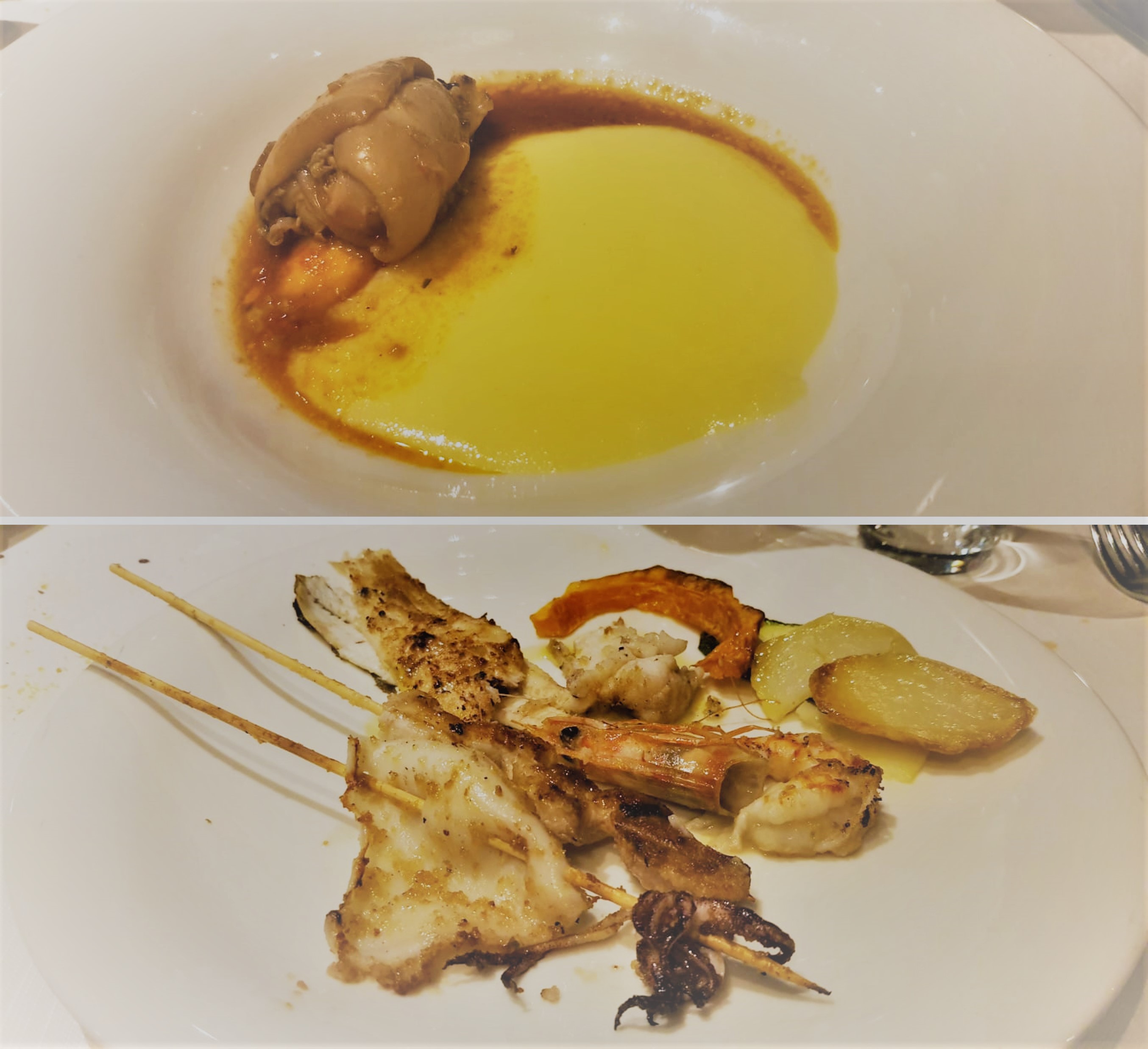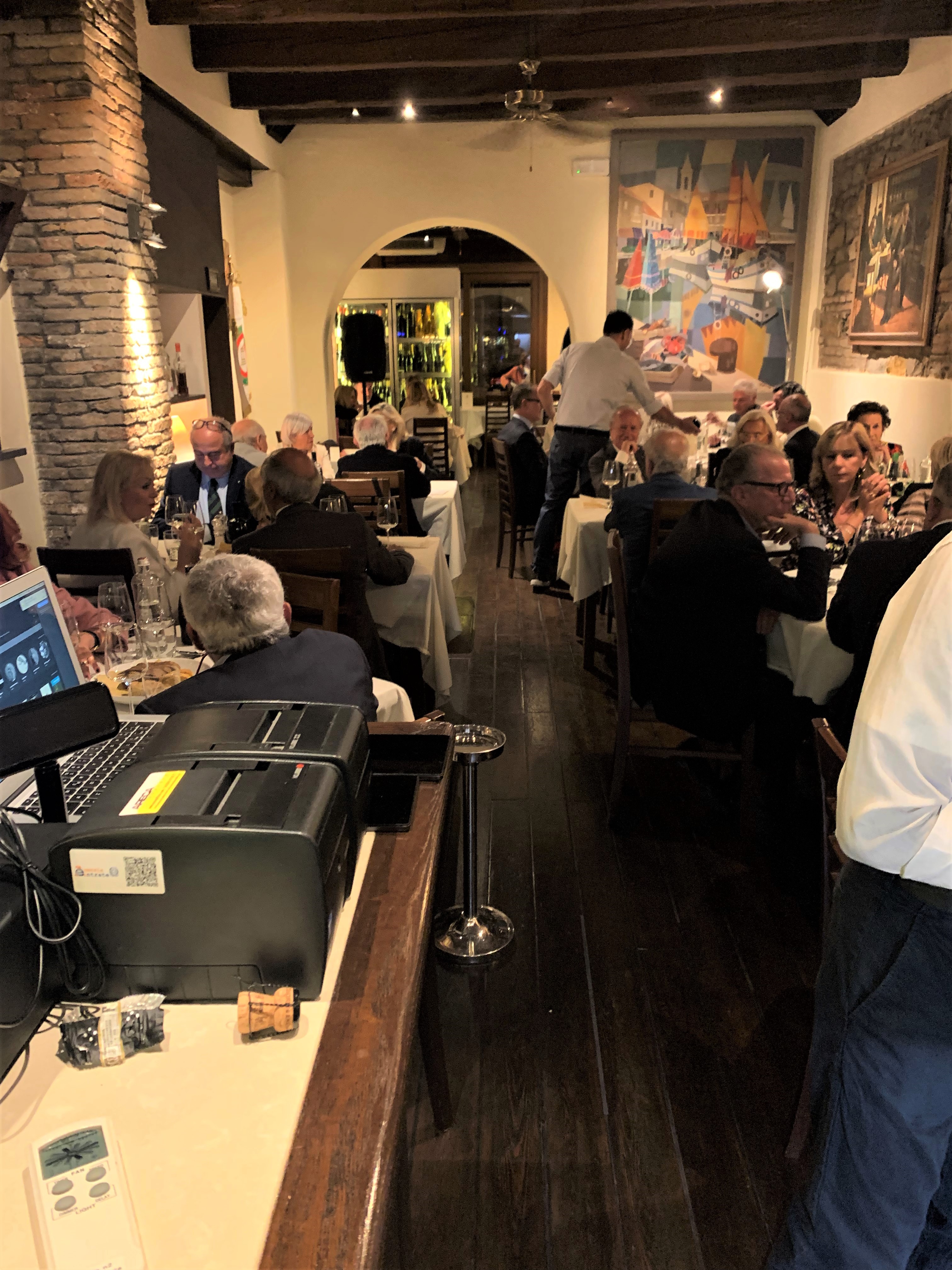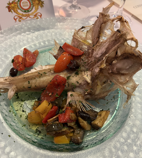 Dopo la pausa estiva, la Delegazione si è data appuntamento all’Osteria da Beppe, storico locale di Cesenatico, a pochi passi dal porto canale, espressione della cucina tradizionale di mare (Foto 1). La serata è stata brillantemente curata dal Simposiarca Jacopo Casanova che, coadiuvato dal gestore Enrico Spada e dallo chef Alessandro Serra, ha proposto un invitante menu a base di pescato dell’Adriatico, ampiamento apprezzato dai numerosi partecipanti. I piatti più graditi: insalata di mare al vapore, seppioline in umido su crema di polenta e grigliata mista dell’Adriatico, quest’ultima preparata con la tradizionale cottura alla brace (Foto 2 e 3). Una riunione conviviale ben riuscita e partecipata che si è conclusa con la consegna del piatto e del guidoncino della Delegazione al gestore e con il festoso accompagnamento degli applausi dei presenti (Foto 4).