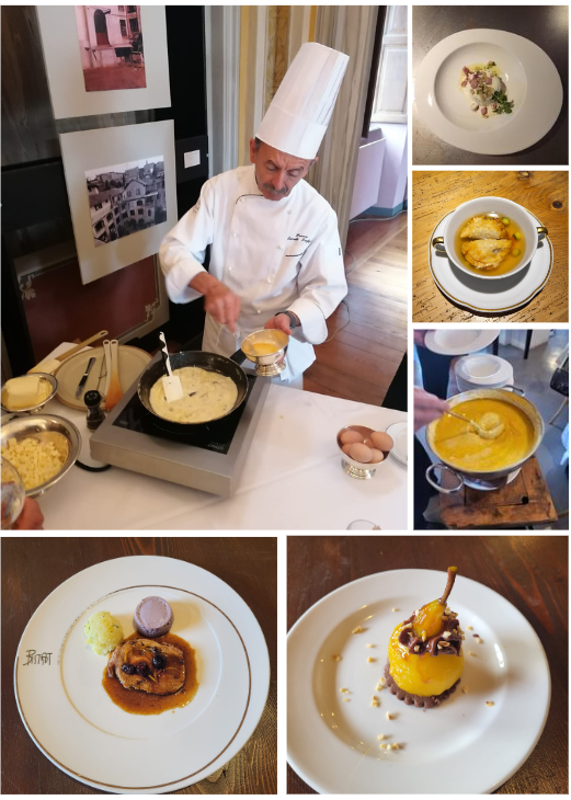 La Delegazione di Biella ha ospitato la seconda edizione della riunione riunione conviviale d’Area Piemonte Est, nata da un’idea del Coordinatore Territoriale Piero Spaini, nonché Delegato di Novara. Erano presenti tutte le 8 Delegazioni con una rappresentanza di Accademici: Alessandria, Asti, Monferrato, Novara, Val d’Ossola, Verbano-Cusio e Vercelli. La Delegata di Biella Maria Luisa Bertotto, organizzatrice dell’incontro, ha accolto il folto gruppo del mondo accademico piemontese nei locali della Fondazione Pistoletto Cittadellarte. Dopo la visita alle sale della Fondazione, l’aperitivo e il pranzo si solo svolti nelle Sale Auliche e nella caffetteria “Bistrot Le Arti”. Sono stati utilizzati ingredienti tipici biellesi e ricette di personaggi illustri di storia locale, dal cuoco di Casa Savoia, Giovanni Vialardi, ad un piatto creato dal Generale La Marmora, figura di spicco del Risorgimento Italiano. Gli artefici della parte gastronomica sono stati Franco ed Ivan Ramella supportati da uno staff di collaboratori efficienti. All’incontro erano presenti Elisabetta Cocito, direttore del CST Piemonte e membro del Centro Studi Franco Marenghi che ha illustrato la storia dei ravioli, il coordinatore dell’area Ovest, Alberto Negro, e Cristina Ciusa Delegata di Milano Navigli. Foto 1. Gruppo dei Delegati. Foto 2. Intervento di E. Cocito. Foto 3. CT e Delegato P. Spaini. Foto 4. Lo chef Ramella; preparazioni.