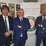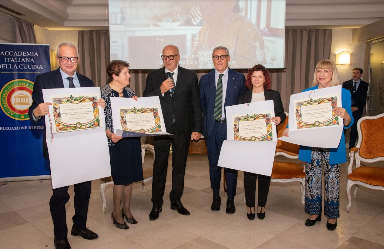 Nella splendida cornice di Villa Lattanzi è avvenuta la cerimonia di consegna dei Premi nazionali proposti dalla Delegazione di Fermo. La serata è stata presentata e aperta dai saluti del Delegato Fabio Torresi, cui sono seguiti gli interventi del Presidente della Camera di Commercio delle Marche Gino Sabatini, del CT Marche e Delegato di Ancona Sandro Marani, che ha esaltato il ruolo della nostra Istituzione nella salvaguardia della tradizione e il contributo dei Premi nella promozione delle eccellenze territoriali. Ad essi sono seguite, apprezzatissime, la relazione di Ugo Bellesi, Consultore nazionale AIC e Delegato di Macerata, titolata “Nuvoletti, Alberini e Villani insigni Accademici” e quella dell’Accademico di Pescara Aternum Leonardo Seghetti, membro del Centro Studi Franco Marenghi, su “Cucina della tradizione, prodotti tipici e valorizzazione del territorio”. La presenza del Prefetto Vincenza Filippi, al termine del suo incarico a Fermo, è stata l’occasione per i dovuti ringraziamenti per il lavoro svolto. Alla cerimonia è seguita la cena basata su piatti della tradizione interpretati dal giovane cuoco di Villa Lattanzi. Di gradimento assoluto sono stati i dolci finali.