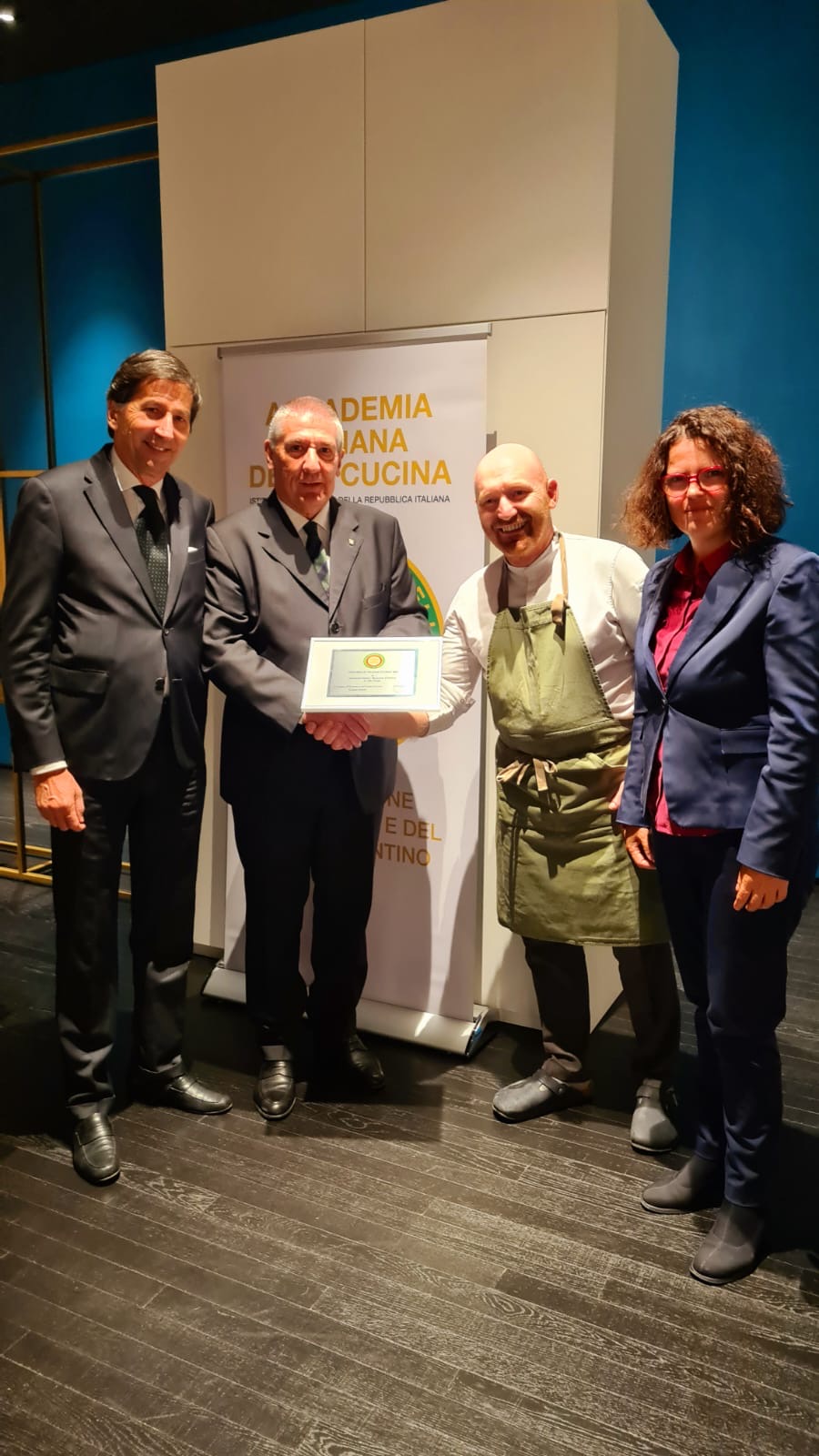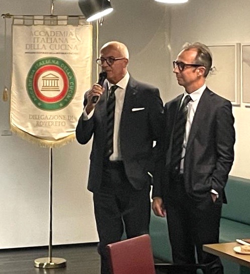 Riunione conviviale di ripresa dell’attività dopo la pausa estiva presso il ristorante “Senso di Alfio Ghezzi” al Mart di Rovereto (TN), organizzata dai Simposiarchi Filippo Tranquillini e Ruffo Wolf (Foto 1). Nell’occasione, alla presenza del Commissario del Governo Prefetto Gianfranco Bernabei, del Vice Sindaco del Comune di Rovereto Giulia Robol (foto 2), dell’Assessore Provinciale allo Sviluppo economico Achille Spinelli e del Presidente dell’APT Rovereto-Vallagarina-Monte Baldo, Giulio Prosser (foto 3 con i relatori), è stato consegnato al ristorante il Diploma di “Buona Cucina” (2022) dell’Accademia. Nel corso del convivio, molto partecipato, i signori Riccardo, Stefano e Paolo Felicetti, titolari dell’omonima azienda della Val di Fiemme, hanno illustrato le caratteristiche della pasta da loro prodotta, assaggiata con i vari piatti, preparati dallo chef Alfio Ghezzi con meditata cura e fusione d’ingredienti del territorio (foto 4. Fusillotto pecora, cacio, pepe e rapanelli; pache all'amatriciana).