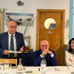 Riunione conviviale di settembre della Delegazione londinese presso il ristorante” San Carlo St James”. Il Delegato Maurizio Fazzari ha illustrato l’attività dell’Accademia nei mesi passati e ha dato un’anticipazione del programma della Delegazione, incluso gli avvenimenti della “Settimana della cucina italiana nel mondo” di novembre. La serata si è svolta in grande allegria e gli Accademici hanno gradito molto il servizio impeccabile del personale di sala, molto attento e cortese; alla fine, lungo applauso per lo staff e la Direzione del locale e per la Vice Delegata Sidney Ross che ha curato l’organizzazione dell’evento.