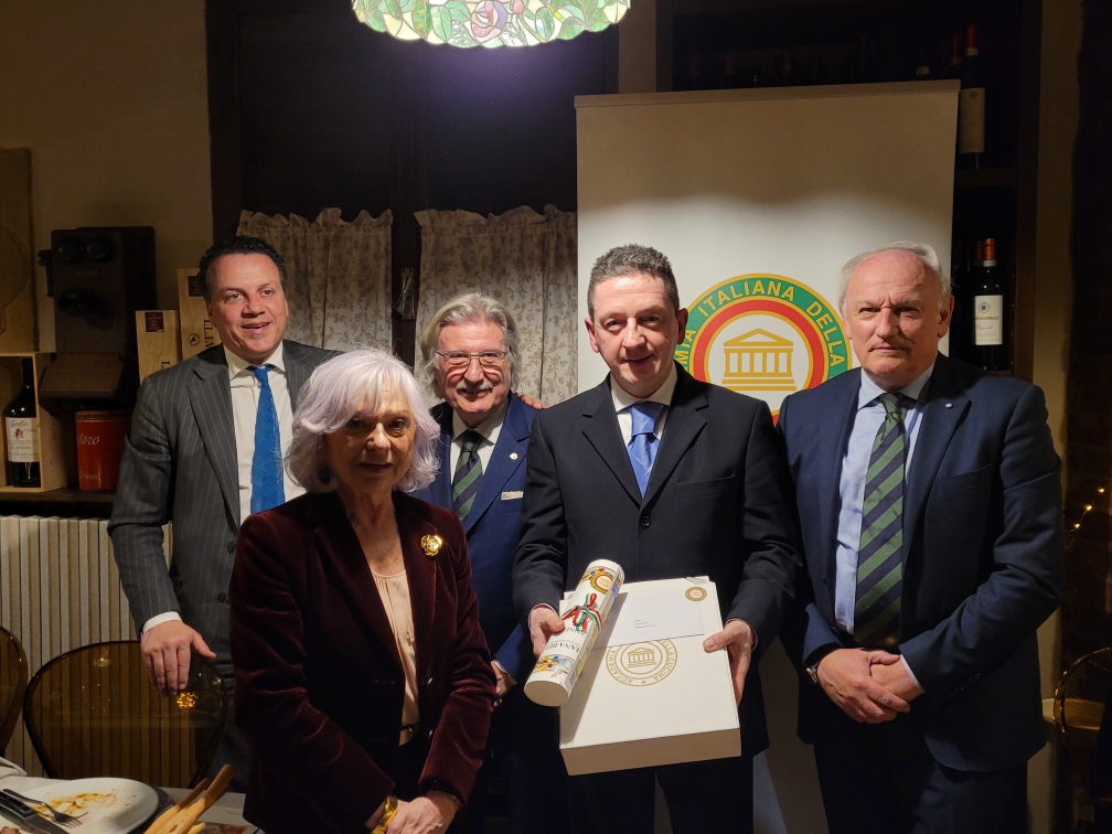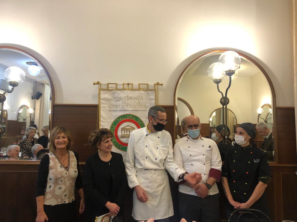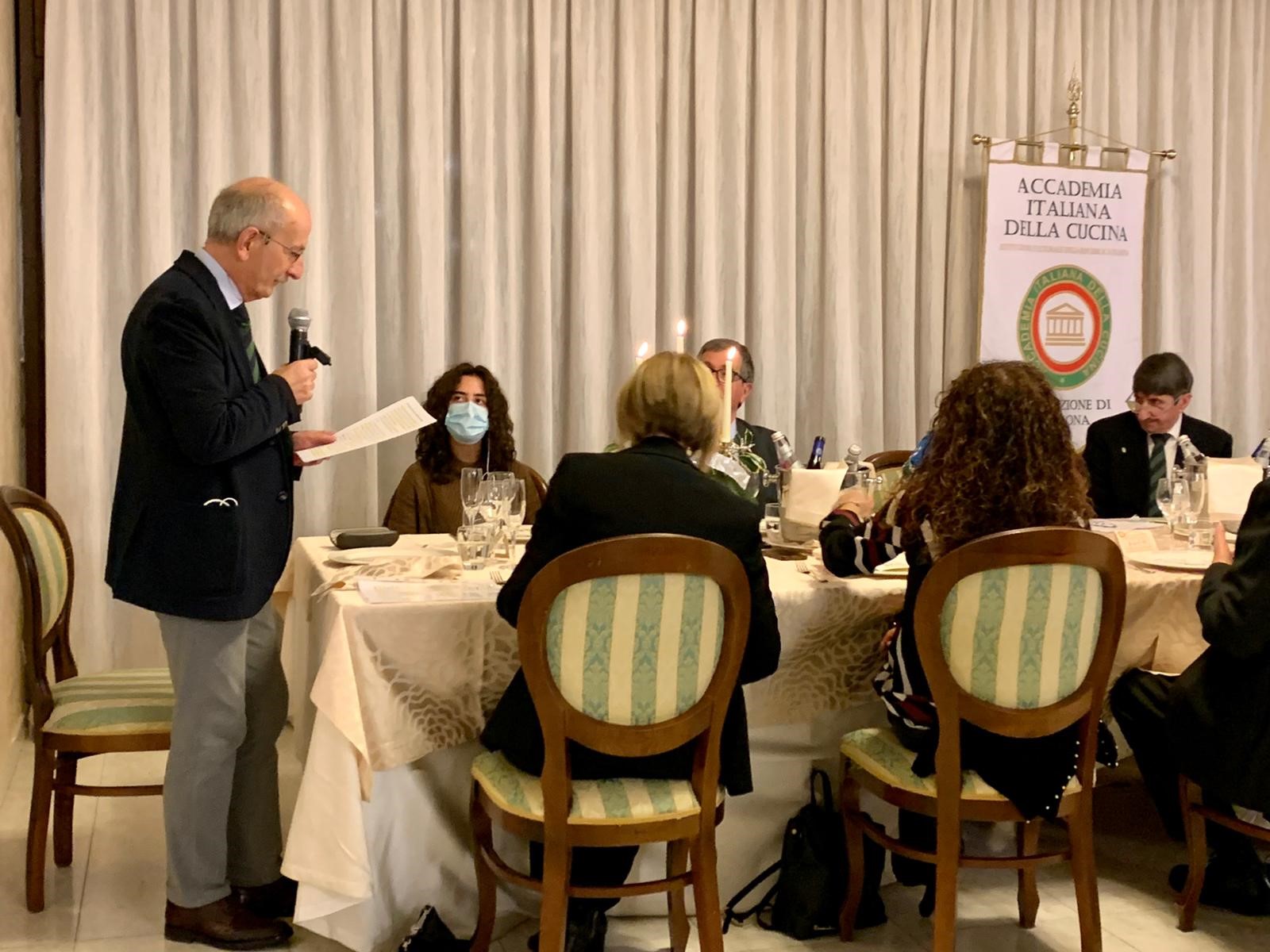 La Delegazione di Sabbioneta-Terre Destra Oglio ha inteso dare particolare risalto alla riunione conviviale di dicembre che tradizionalmente rappresenta l’occasione per lo scambio di doni e auguri di Natale. L’evento si è tenuto presso il Ristorante di Villa Cantoni Marca, una residenza storica già sede di albergo e annesso ristorante, ristrutturato di recente. In questa location molto piacevole il giovane chef Francesco Ricciuto e la compagna Miriam, maître di sala, hanno accolto entusiasti la prima visita dell’Accademia Italiana della Cucina. Oltre alla presenza di tutti gli Accademici e di gran parte dei famigliari, la serata ha visto la partecipazione di numerosi ospiti. Si è voluto infatti celebrare in un’unica occasione i destinatari dei vari premi assegnati nel 2021: Premio “Massimo Alberini” a Massimo Danini di “Danini Carni” per l’eccellenza e la costanza dei prodotti; Premio “Dino Villani” a Mario Valli di “GAM S.r.l.” per la Mostarda Viadanese; Premio “Dino Villani” a Ernesto Grazzi di “Grazzi Salumi” per i Ciccioli frolli. Altro appuntamento importante della serata è stato rappresentato dal dono, alle biblioteche civiche, del volume “Storia della cucina italiana a fumetti” edito dall’Accademia. I sindaci dei rispettivi Comuni di Sabbioneta, Commessaggio e Viadana hanno aderito con entusiasmo all’iniziativa di cui hanno condiviso la finalità culturale. Le biblioteche degli altri Comuni del territorio della Delegazione saranno raggiunte prossimamente. La qualità del menu, la curiosità, l’interesse per finalità e scopi dell’Accademia nonché la convivialità dei presenti hanno dato sostanza ad una iniziativa ben riuscita.