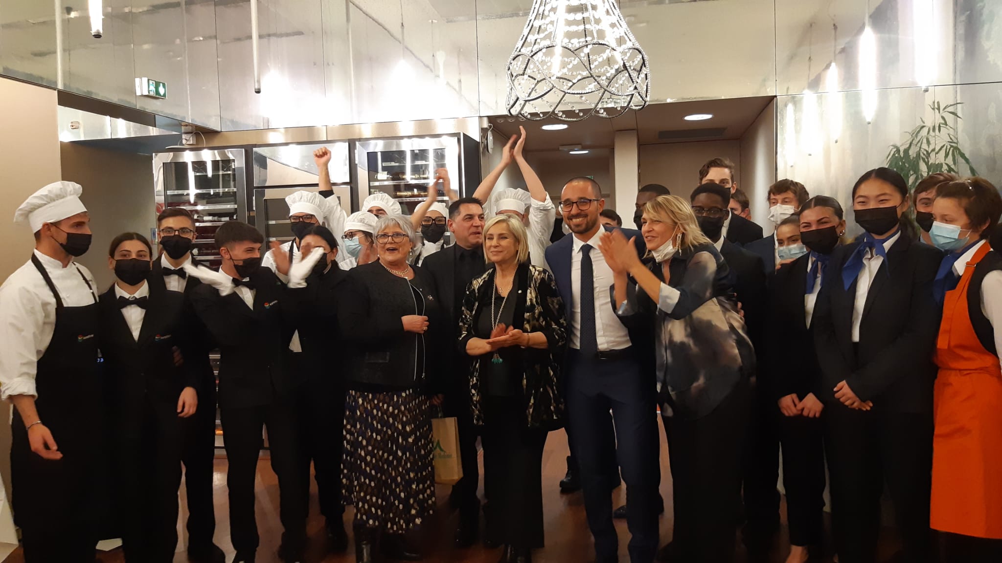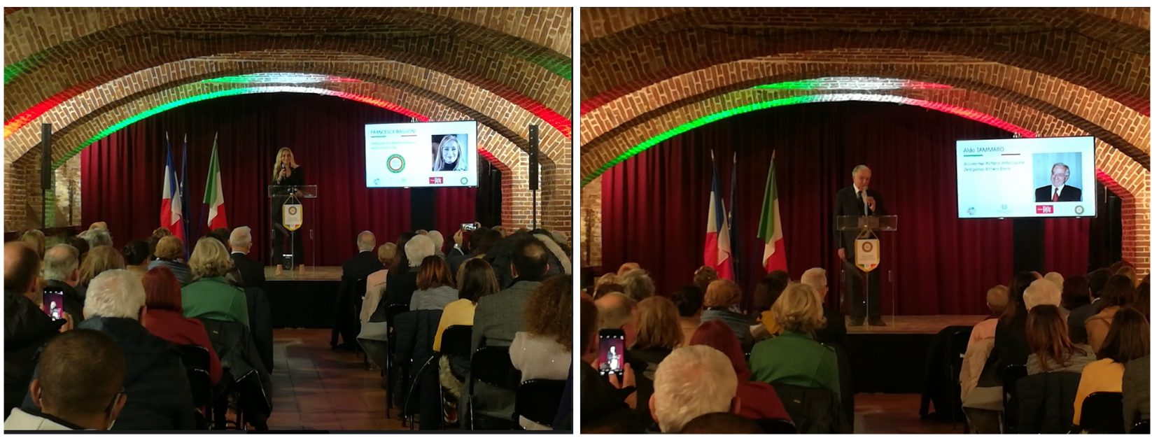 Per la VI edizione della Settimana della Cucina Italiana nel Mondo, le Delegazioni di Parigi Montparnasse e Canicattì hanno collaborato attivamente con il Consolato Generale d'Italia a Parigi per la preparazione, lo svolgimento e la realizzazione dell'evento "Tra versi e pietanze prelibate. A tavola con Dante e Sciascia" che ha voluto onorare contemporaneamente il Sommo Poeta Dante Alighieri e lo scrittore Leonardo Sciascia. La conferenza e la master class hanno avuto luogo presso il liceo alberghiero G. Tirel di Parigi, riscuotendo un grande successo e con la piena soddisfazione di organizzatori, collaboratori ed intervenuti. Hanno partecipato all'evento, tra l’altro, sia gli alunni delle scuole alberghiere di Canicattì e di Parigi per la preparazione del grandioso ricevimento offerto dopo la conferenza sia gli alunni del liceo italiano a Parigi e linguistico di Canicattì per decantare, durante la conferenza, versi degli autori, collegati al tema scelto. Foto 1. La Delegata di Parigi Montparnasse Laura Giovenco Garrone apre ufficialmente l'evento. Foto 2. Alunni dell'Euroform di Canicattì. Foto 3-4. La Delegata di Canicattì e membro della Consulta accademica Rosa Cartella.