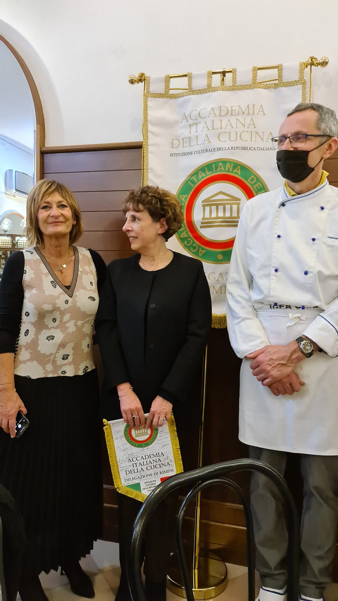 La Delegazione di Rimini ha organizzato una cena dedicata a Francesca da Rimini nell’ambito di una serie di eventi culturali che vedono protagonista il personaggio più noto e amato della Divina Commedia nel settimo centenario della morte di Dante. Il convivio “A tavola con Francesca” è stato realizzato in collaborazione con l’Istituto Alberghiero S. P. Malatesta di Rimini, luogo in cui si è svolto l’evento grazie alla disponibilità della dirigente Ornella Scaringi. Il curioso menu che si è assunto come linea guida della serata è conservato al Museo Teatrale del Burcardo e rievoca una cena del 1950 ispirata alla tragedia Francesca da Rimini di Gabriele D’Annunzio del 1902. Lo chef Marco Rossi e gli allievi dell’Istituto hanno rielaborato i piatti con sensibilità gastronomica componendo una proposta di ricette coerenti e appetibili al tempo stesso. La Delegata Luisa Maria Bartolotti ha illustrato la storia del menu e il lavoro di ricerca svolto per l’attribuzione, lo chef Marco Rossi ha spiegato e argomentato la scelta dei vari piatti dando la possibilità anche ai ragazzi di spiegarne la realizzazione. Tutte le portate di ottimo livello sono state apprezzate e applaudite. Impeccabile anche il servizio dei ragazzi in sala. Numerosa la partecipazione degli Accademici e degli ospiti alla serata decisamente ben riuscita.