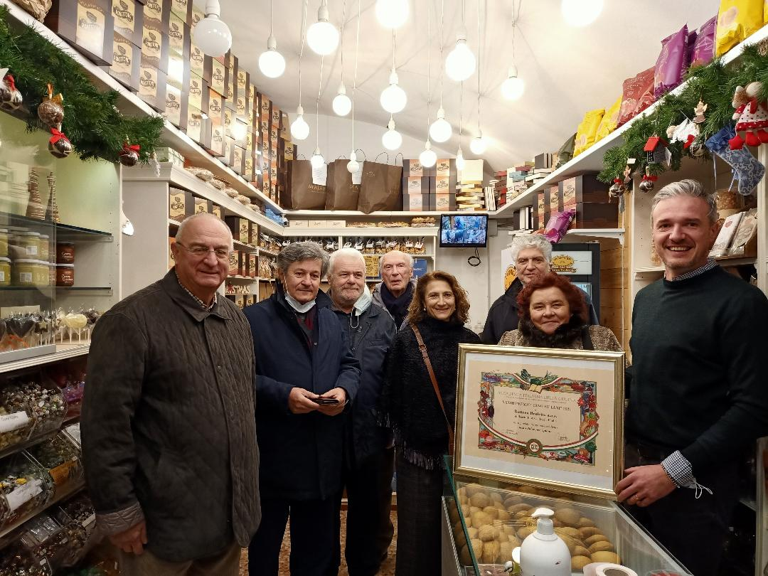 La Consulta della Delegazione reggiana ha consegnato al sig. Riccardo Benetti, titolare della storica “Bottega Broletto”, il prestigioso premio “Dino Villani” 2021 per un prodotto conosciuto e usato da tutti in città: il pesto dolce per ripieno. Per la produzione di questo pesto la bottega è il luogo dei ricordi dei sapori della città e da sempre è riconosciuta come il luogo dove trovare le specialità dolci del territorio (spongate tipiche reggiane, biscioni reggiani, amaretti) . Questo pesto, usato per la farcitura dei tortellini fritti dolci, segue un disciplinare di produzione antichissimo, che parte con la raccolta, insieme al mosto della recente vendemmia, delle pere nobili e delle mele cotogne. Poi i canditi, l’uvetta passita, caffè, castagne e mille altri segreti che si aggiungono fino a dicembre, seguendo l’evolversi della stagione e prendendo da ogni mese i frutti necessari alla costruzione di questo storico amalgama. Poiché tale ripieno è una tradizione consolidata del territorio, è interessante notare che ancora oggi è abitudine delle famiglie reggiane produrne una parte in casa e poi aggiungere, al proprio, il pesto della Bottega Broletto per recuperare un sapore che è uno dei più identitari della provincia.