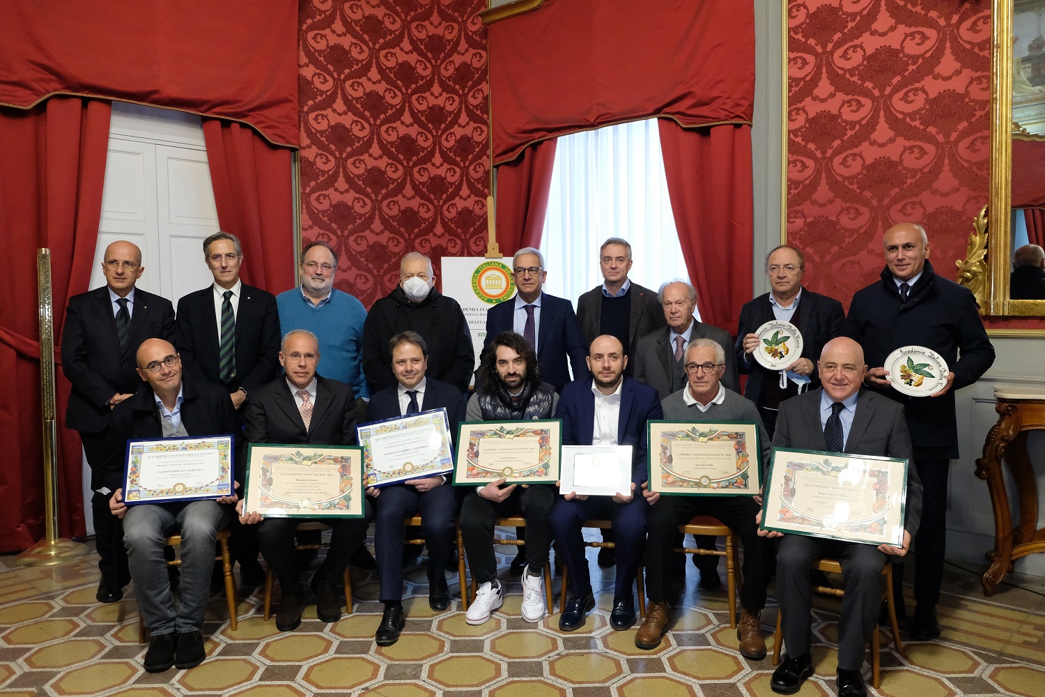 Sono otto i premi nazionali che l’Accademia Italiana della Cucina ha assegnato negli anni 2020 e 2021 a ristoratori, produttori ed esercizi commerciali della provincia di Cosenza su proposta della Delegazione locale. I premi sono stati consegnati nel corso dell’evento organizzato dalla Delegazione presso il Palazzo della Provincia di Cosenza (foto 1), promosso in occasione della VI Settimana della Cucina Italiana nel Mondo, sul tema "La cucina di territorio tra tipicità, tradizione e sostenibilità”. Al tavolo dei relatori il Delegato Rosario Branda, il Sindaco di Cosenza Franz Caruso, il Presidente della Provincia Franco Iacucci, Paolo Marchi, ideatore e conduttore di Identità Golose, il Direttore del Centro Studi territoriale dell’Accademia Ottavio Cavalcanti, l’Assessore regionale all’Agricoltura Gianluca Gallo (foto 2). In particolare sono stati consegnati (foto 3) il premio “Dino Villani" all’azienda salumificio San Vincenzo per la “Sopressata di suino nero di Calabria dop” e all’azienda Ruffolo per il “Caciocavallo silano dop”; il Premio "Massimo Alberini" all’azienda Amarelli Fabbrica di Liquirizia e all’Agricola Campoverde; il Premio “Giovanni Nuvoletti” agli chef Gaetano Alia de La Locanda di Alia di Castrovillari ed Emanuele Lecce de La Tavernetta di Camigliatello Silano ed, infine, il Diploma di Buona Cucina agli chef Michele Rizzo del ristorante Agorà di Rende e Palmino Raffo del Sabbia d’Oro di Belvedere Marittimo. Impegnati nel progetto gli studenti e i docenti dell'Istituto Alberghiero “Mancini-Tommasi” di Cosenza guidati dalla dirigente Graziella Cammalleri (Foto 4).
