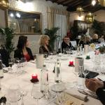 La cena degli auguri di Biella si è svolta presso il ristorante di pesce Regallo. Lo chef Ravinetto propone pesce fresco e materie prime di alta qualità abbinati a sapori inconsueti. Dopo i saluti iniziali della Delegata Marialuisa Bertotto, il Simposiarca Renato Zorio (foto 1) ha illustrato il tema della serata “Seguendo l'Acqua”, ossia un percorso sensoriale dato dall'incontro dei pesci dalla sorgente al mare. Al termine della cena la Delegata Bertotto si è complimentata con lo chef Claudio Ravinetto e la maitre di sala Chiara Prior per la buona riuscita del convivio che ha entusiasmato i commensali ed ha offerto loro un omaggio, il grembiule della Delegazione (foto 2).