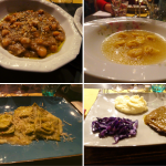 Per l'atteso scambio degli auguri la Delegazione del Mugello si è ritrovata presso l’Antica Osteria di Montecarelli, in località Montecarelli a Barberino di Mugello (FI), dove un tempo si trovava una vecchia stazione di posta. Gli Accademici hanno potuto degustare piatti della tradizione preparati con passione e grande abilità da Paola Giovannardi insieme al figlio Samuele. Il menu è stato accuratamente selezionato dal Simposiarca Renzo Bartoloni che durante il convivio, in qualità di membro del Centro Studi della Toscana Est, ha presentato il tema del nuovo anno. Una serata molto piacevole che gli Accademici in compagnia dei coniugi e di alcuni ospiti hanno potuto trascorrere nelle accoglienti salette con i camini accesi dell’Antica Osteria, immersi nell’atmosfera di una volta. Foto 1. Un momento della serata. Foto 2. Il Simposiarca Bartoloni illustra il menu. Foto 3. La consegna della vetrofania e del volume "Storia della cucina italiana a fumetti" ai ristoratori. Da sinistra la Delegata Monica Sforzini, Paola Giovannardi e il figlio Samuele. Foto 4. Alcuni dei piatti serviti (zuppa di ceci, tortellini fatti in casa in brodo di gallina; baldanzoni con salsa di porri e caprino; brasato con purea di patate).