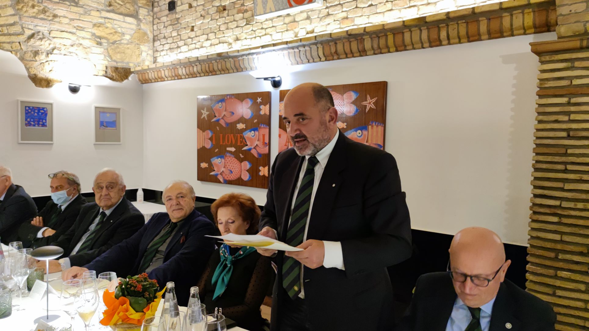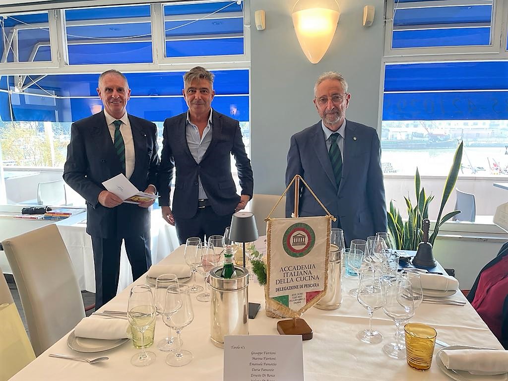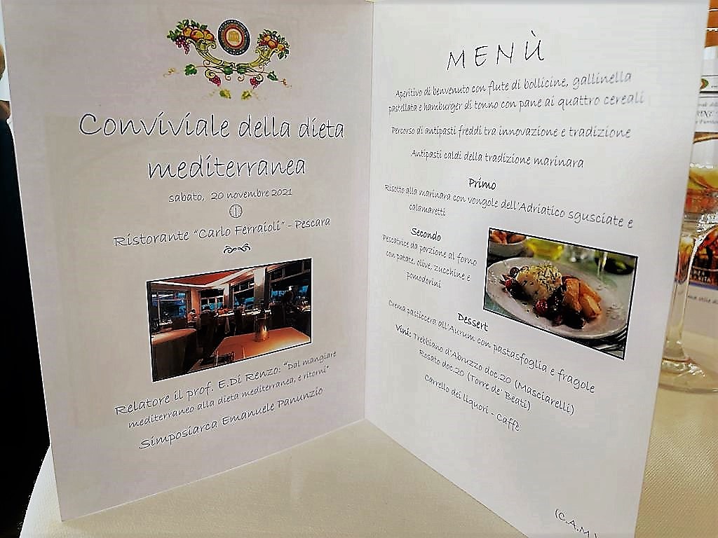 Gli Accademici di Pescara si sono ritrovati al ristorante Carlo Ferraioli per una riunione, aperta a familiari e ospiti, che ha visto come relatore il prof. Ernesto Di Renzo, docente di Antropologia del gusto, dei patrimoni culturali e gastronomici e del turismo all’Università di Roma Tor Vergata. Tema della relazione: “Dal mangiare mediterraneo alla dieta mediterranea, e ritorni”, un interessante excursus sui processi storici e culturali che hanno dato origine alla Dieta Mediterranea come modello alimentare capace di rispondere ai bisogni salutistici, identitari ed etici del mangiare contemporaneo, oltre che di rispondere ai valori della sostenibilità e del riuso delle risorse quali espressioni vive della circolarità delle idee. Per l’occasione, il Simposiarca Emanuele Panunzio ha scelto un menu a base di pesce, con deliziosi piatti tra tradizione e innovazione. Foto 1. Da sinistra il Simposiarca Panunzio, il relatore Di Renzo e il Delegato Giuseppe Fioritoni. Foto 2-4. Menu; risotto; rana pescatrice al forno.