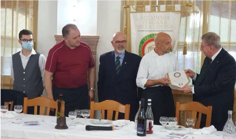 Nella meravigliosa cornice dell’ex convento dei frati minori, si è svolto il convegno della Delegazione di Atri sul rapporto tra cibo e anima. Il Sindaco di Castilenti (TE), Alberto Giuliani, ha ricordato la storia del convento, profondamente intrecciata a quella della comunità; il Coordinatore Territoriale, Nicola D’Auria, ha formulato il saluto della sezione abruzzese dell’Accademia. Il Delegato di Atri Antonio Moscianese Santori ha introdotto il tema con un breve richiamo all’importanza del cibo nel mondo della spiritualità umana, dal mondo della Grecia antica ai moderni concetti dell’universo vegetariano e vegano. Ha preso poi la parola l'Accademica Antonella Tollis, giornalista presso la Regione Abruzzo. La sua relazione è iniziata con la disamina del termine “disciplina”, che non è solo limitazione, punizione mortificazione, ma anche misura, equilibrio. Ha proseguito il convegno il prof. Francesco Cocco, esperto di relazioni internazionali, che ha voluto segnalare il proficuo ritorno in campo economico dello studio e valorizzazione degli aspetti culturali dell’alimentazione. Fra’ Emiliano Antenucci, Rettore del santuario della Madonna del Silenzio e Accademico di Avezzano e della Marsica, ha parlato della dieta del monaco, partendo dalla riflessione sul significato della parola dieta, intesa come stile di vita, non solo come restrizione alimentare. Le conclusioni sono state tirate dal Vice Presidente Vicario, Mimmo D’Alessio, che ha ripercorso le fasi salienti delle relazioni e ricordato il ruolo fondamentale della nostra Accademia nella conservazione dei valori culturali e materiali della cucina italiana. Dopo il convegno, gli Accademici e i graditi ospiti si sono ritrovati presso il ristorante “La Masseria” di Piane di Castiglione Messer Raimondo.