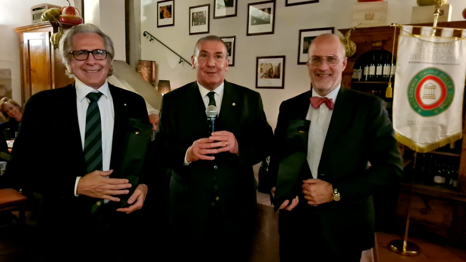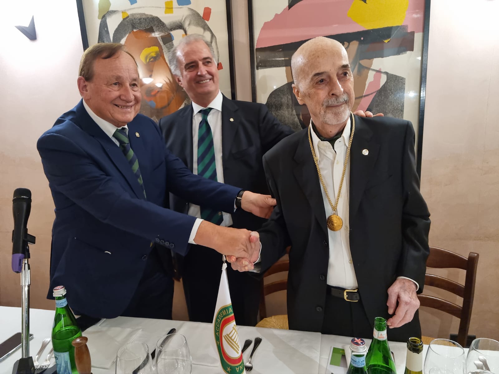 Nel ristorante storico “La Provvidenza” la Delegazione di Ferrara ha celebrato l’entrata di Severino Sani nell’Albo d’Onore, alla presenza del Presidente Paolo Petroni e del Segretario Generale Roberto Ariani. Severino Sani, dopo una vita dedicata all’Accademia, dopo anni di impegno come membro del Consiglio di Presidenza, svolto con dedizione e tanta passione, fino a rivestire la carica di Vice Presidente Vicario, è entrato a far parte del prestigioso Albo d’Onore. Il Delegato Luca Padovani ha aperto la serata, presentando le autorità accademiche presenti e rivolgendo un saluto speciale a Carlos Victor Dana, storico Accademico di Ferrara, già membro dell’Albo d’Onore. Simposiarchi della serata, Giorgio Piacentini che ha magistralmente descritto i piatti proposti nel menu descrivendone non solo le peculiarità culinarie, ma anche le affascinanti origini storiche e culturali e Oreste Chiarior che ha esposto le caratteristiche dei vini scelti per la cena. Poi il momento atteso da tutti i convenuti: il Presidente Paolo Petroni ha preso la parola e ha ripercorso il “cursus honorum” dell’amico Severino. Ne ha elogiato le grandi qualità di Accademico. Non solo. Con un velo di commozione ne ha ricordato le esemplari doti umane. L’atmosfera era quella delle grandi occasioni. La forte amicizia che traspariva dalle parole e dai gesti ha contribuito a suscitare forti emozioni. Il Presidente ha infine consegnato a Severino Sani l’Attestato di Benemerenza e la Medaglia Onorifica personalizzata. È stato il momento più intenso di una serata memorabile.