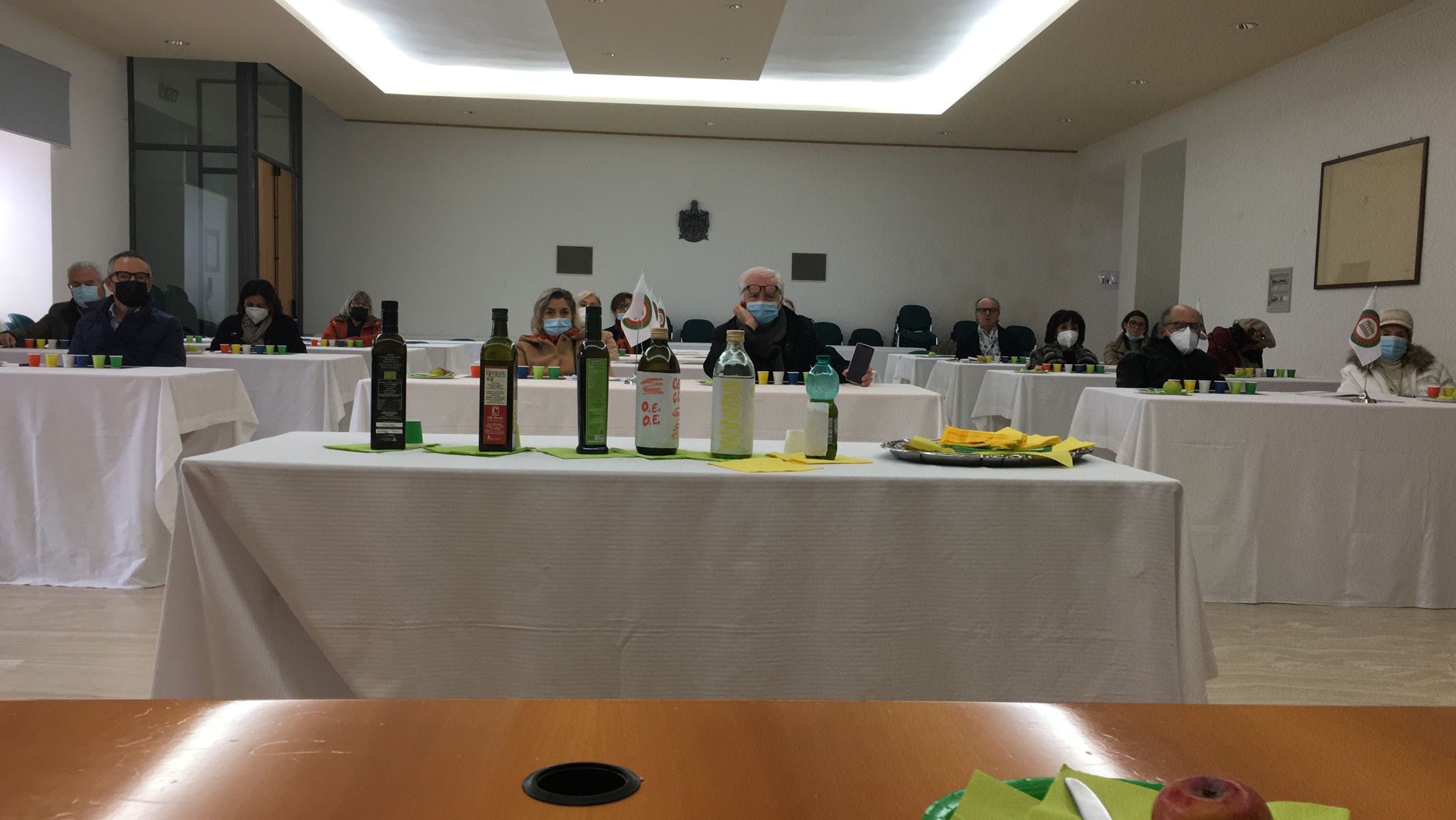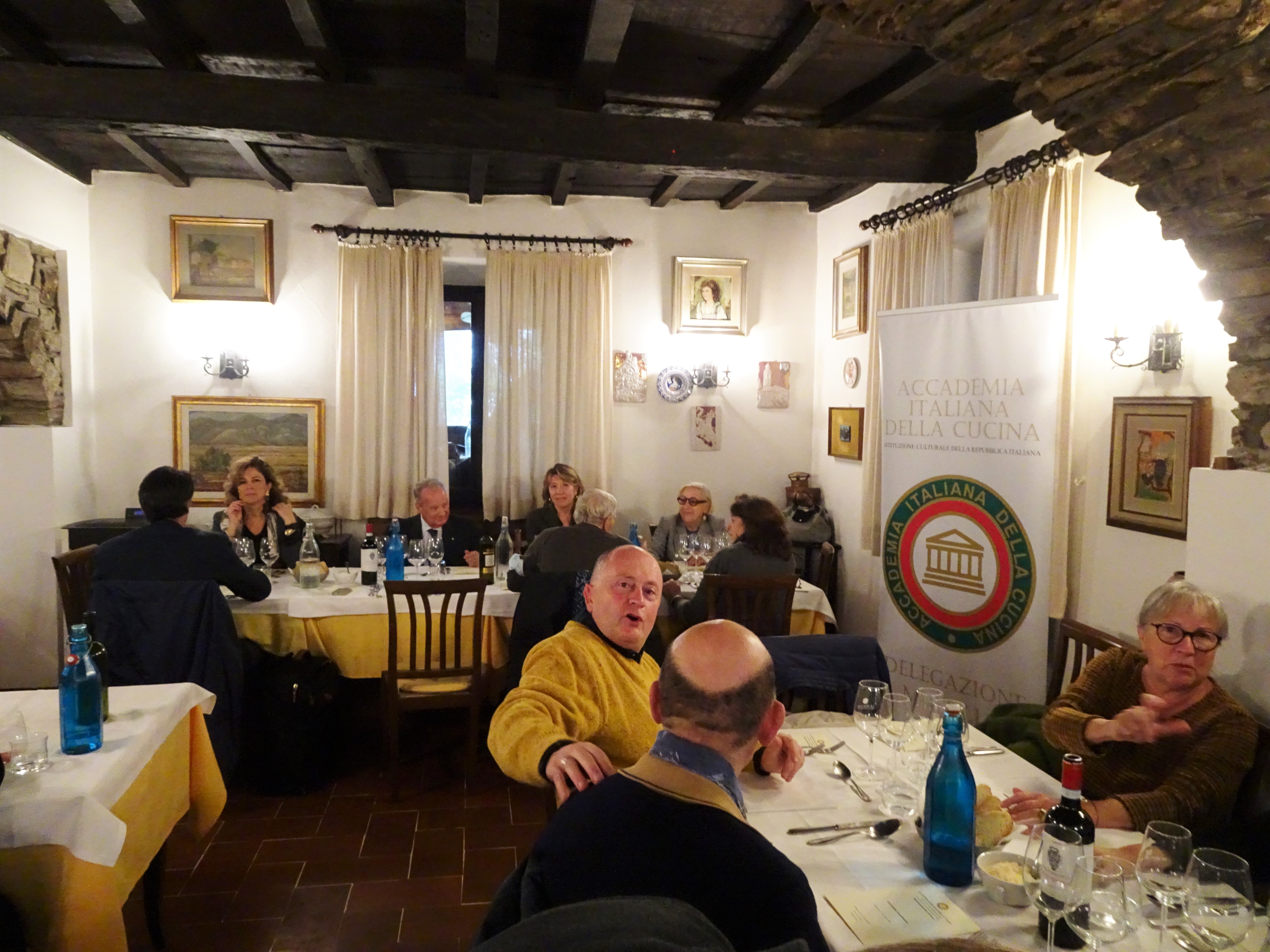 Splendida giornata alla scoperta dell’Oro di Falerone: l’olio di Piantone cultivar autoctono già oggetto di De.Co. Gli Accademici di Fermo e loro ospiti nella mattinata di domenica 21 novembre sono stati accolti dal Sindaco e Vice nel Salone Comunale del paese della media valle del Tenna e, guidati dal prof. Leonardo Seghetti, hanno appreso doti e caratteristiche peculiari dell’olio di Piantone. Presenti i tre produttori locali hanno poi potuto apprezzarne le peculiarità e qualità in una degustazione guidata e in parallelo con altri oli anche commerciali. Di notevole suggestione l’eloquio del professore e notevole anche il prosieguo presso il ristorante Le Loggette dove, in un menu appositamente studiato, l’olio di piantone in purezza veniva declinato in accostamento a verdure crude e cotte, polenta e ceci, zuppa di legumi, pappardelle al limone e parmigiano e un misto di bolliti fra cui notevole il piccione di antica tradizione. L’encomiabile impegno e dedizione della Simposiarca Clarissa Marzialetti è stato premiato dalla grandissima soddisfazione dei convenuti.
