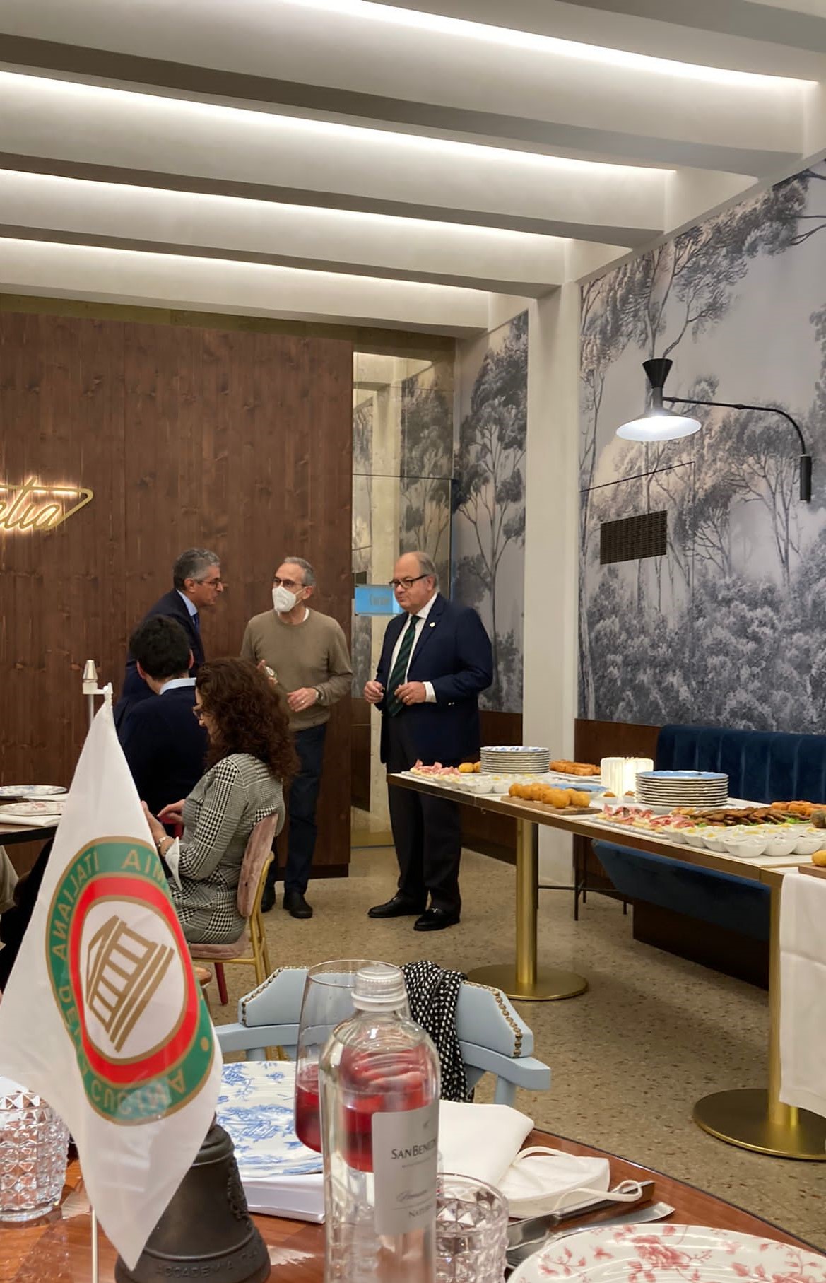 Riunione conviviale presso il ristorante Amici di Key Biscayne, località situata nell'area metropolitana di Miami che offre ai visitatori un paesaggio ricco di vegetazione tropicale e bianche spiagge, in un’atmosfera tipica caraibica. Il proprietario Danilo Gualtieri, erede di una famiglia di ristoratori di San Marino, ha accolto i numerosi Accademici in un ambiente sobrio ma elegante. Il tema della serata è stato dedicato all’isola di Procida, capitale mondiale della cultura per il 2022; lo chef Vittorio Cerase ha saputo interpretare con professionalità lo spirito proprio dell'Accademia, abbinando cibo alla cultura e alla tradizione isolana. Sul menu ha voluto quindi trascrivere frasi tratte dai romanzi di Elsa Morante (l'Isola di Arturo) e di Lamartine (Graziella) ambientati sull'isola. Sul tavolo, come segnaposto, ogni ospite ha poi trovato un biglietto scritto a mano con note storiche e geografiche relative a Procida. Molto apprezzata la presentazione dei piatti e la loro preparazione, in particolare gli antipasti di pesce crudo.