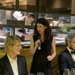 La Delegazione di Milano Navigli si è ritrovata al ristorante 142 nell’area Navigli, all’inglese one-fo(u)r-two: 1 spazio unico dove poter vivere i 4 momenti, dalla prima colazione, al pranzo, all’aperitivo fino alla cena con l’accoglienza di 2 anime, la sala e la cucina in un’idea aperta di condivisione. Sotto la guida di Sandra Ciciriello una brigata di tre trentenni, nonché partner del progetto, animano la cucina e il laboratorio di pasticceria; in sala giovani allievi dai 18 ai 24 anni. Un luogo dove ogni angolo dà traccia di una passione personale che convive con la tavola. Un contesto coerente per condurre gli Accademici, con le parole di Silvana Chiesa, storica e ricercatrice, alla nobile funzione del Centro Studi Territoriale all’interno dell’Accademia, il perché fu istituito nel 2009 e oggi cosa rappresenta nello scenario della cultura italiana della cucina; nonché i dietro le quinte, le curiosità dei progetti editoriali e gli Accademici che ne fanno parte. Il ruolo fondamentale e puntuale della ricerca. Suggestioni e rivelazioni nell’esperienza culinaria da cos’è un menu, quali i denotati che definiscono i tempi e le modalità della tavola. Milano accoglie la cucina di tutto il mondo, per questo troviamo menu locali e non i quali raccontano la storia del ristorante: dietro un piatto ci sono persone, economia, commercio, cioè la storia profonda della gastronomia italiana. Niente è affidato al caso, se non l’estro del cuoco che fa parlare la tradizione attraverso la sua scarola all’ischitana di memoria di casa. In foto 1. La Delegata Cristina Ciusa. Foto 2. Intervento di Silvana Chiesa, Direttore del Centro Studi Territoriale Lombardia. Foto 3. Ciusa e Chiesa. Foto 4. Baccalà con scarola e noccioli di olive.