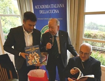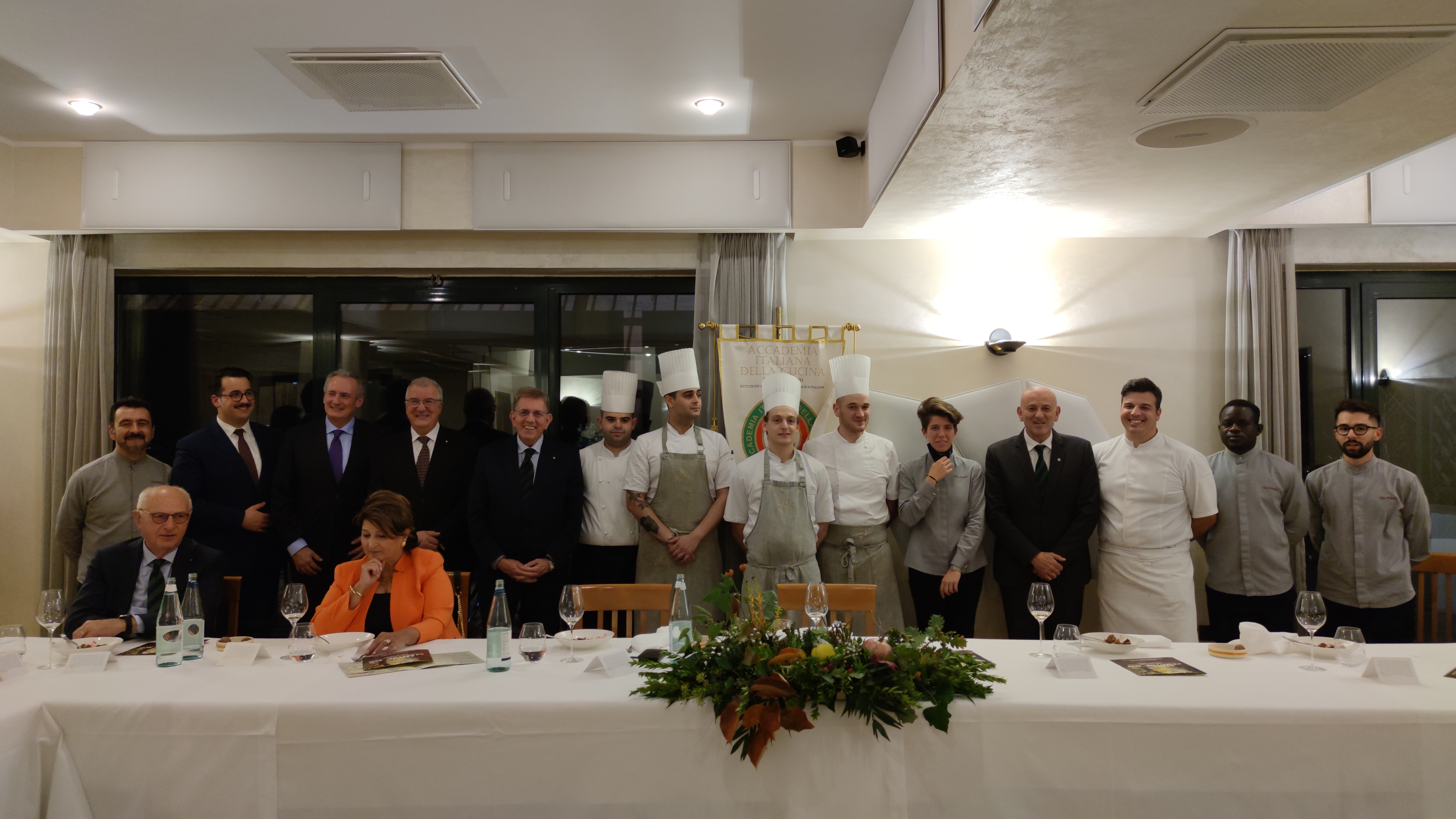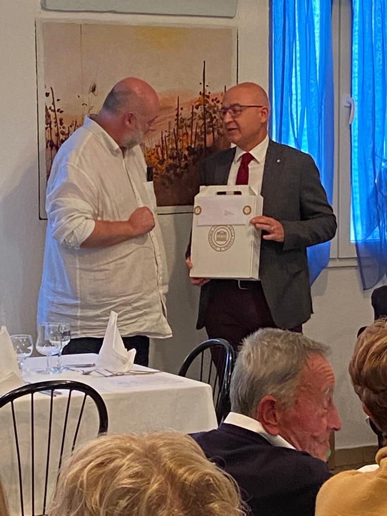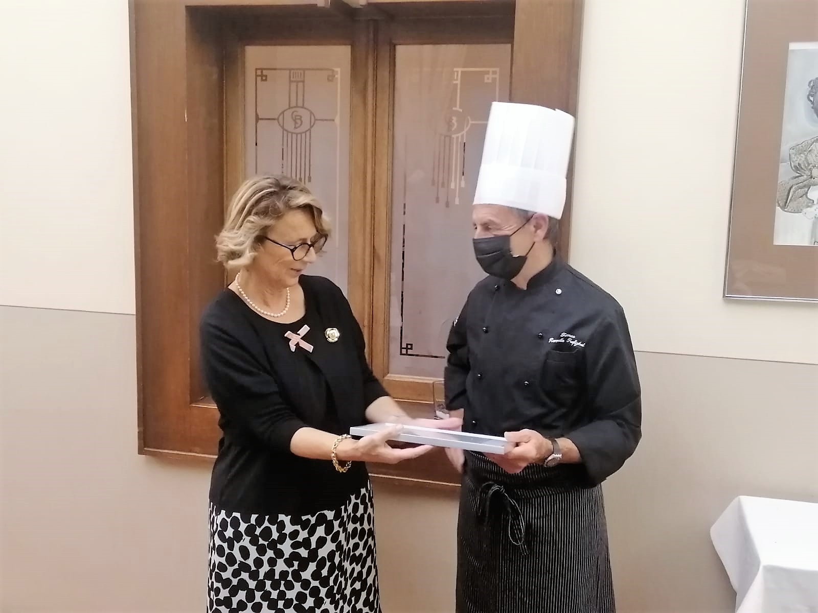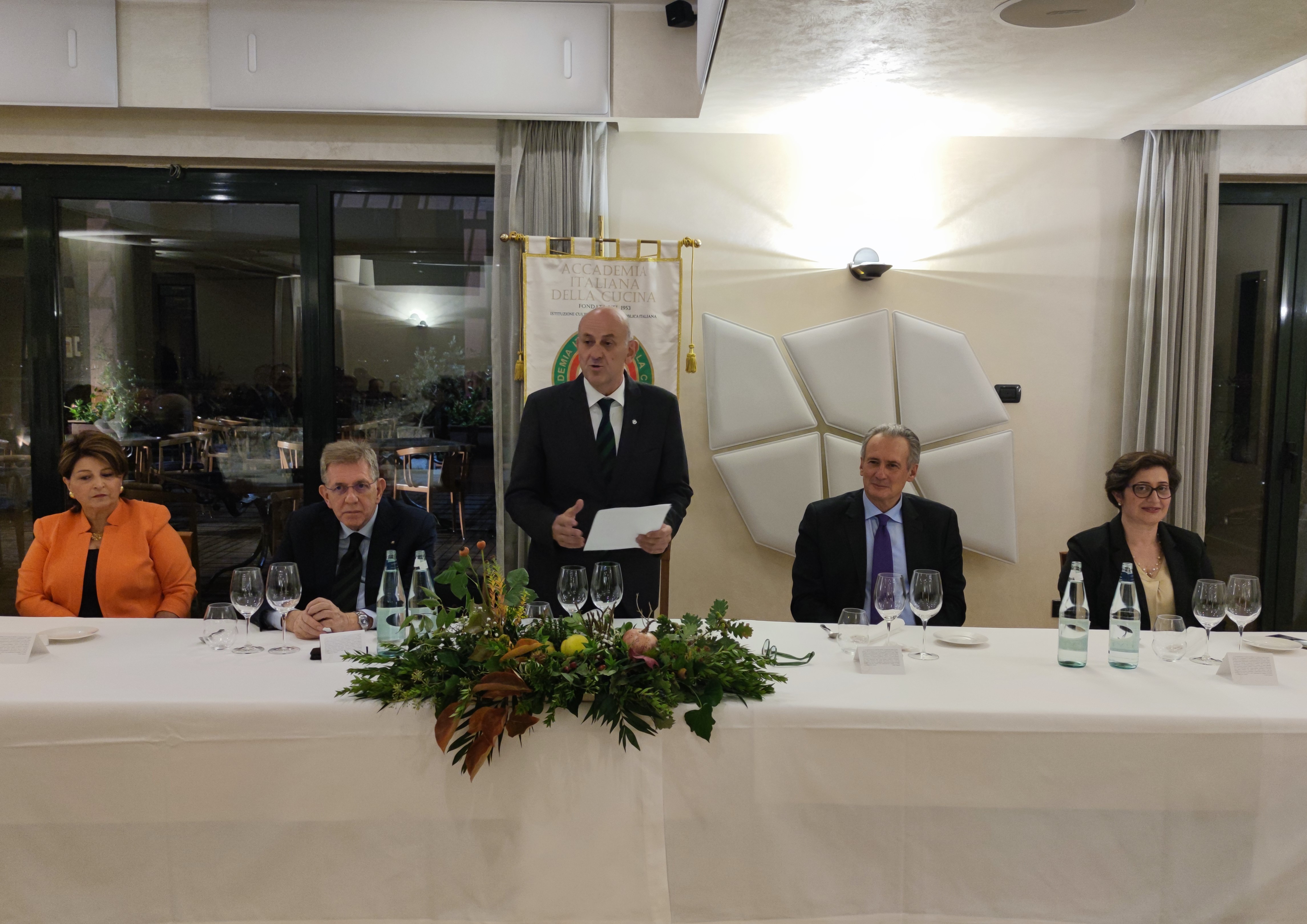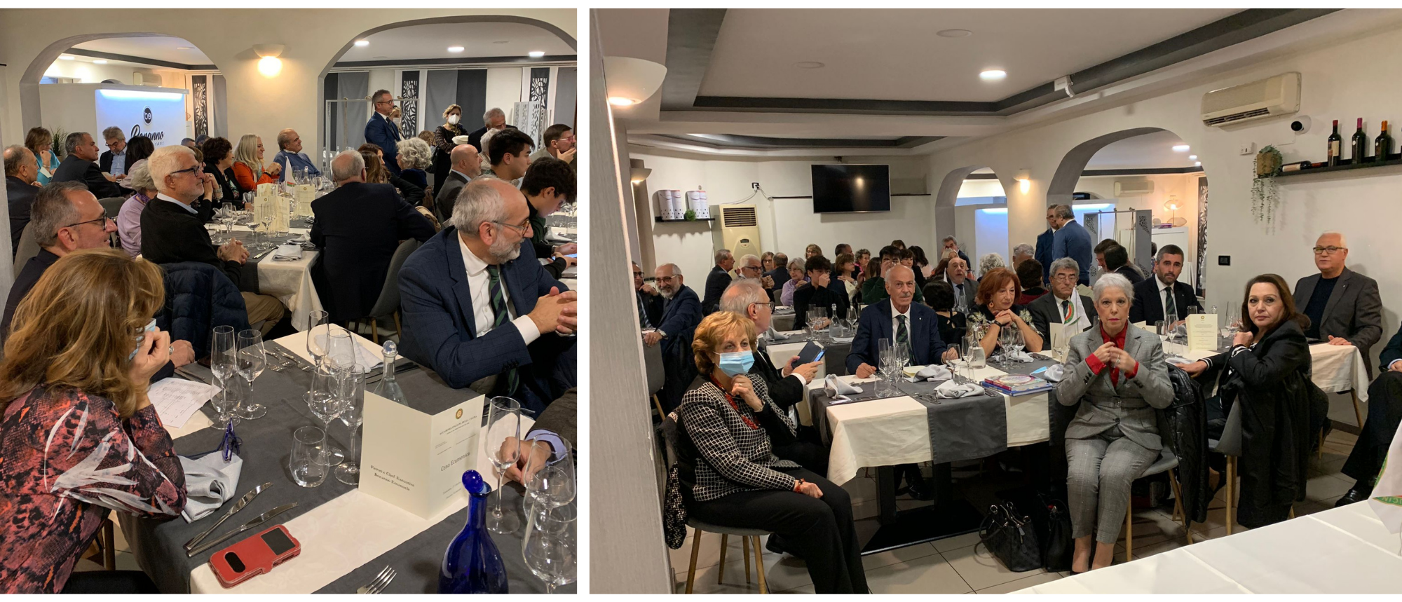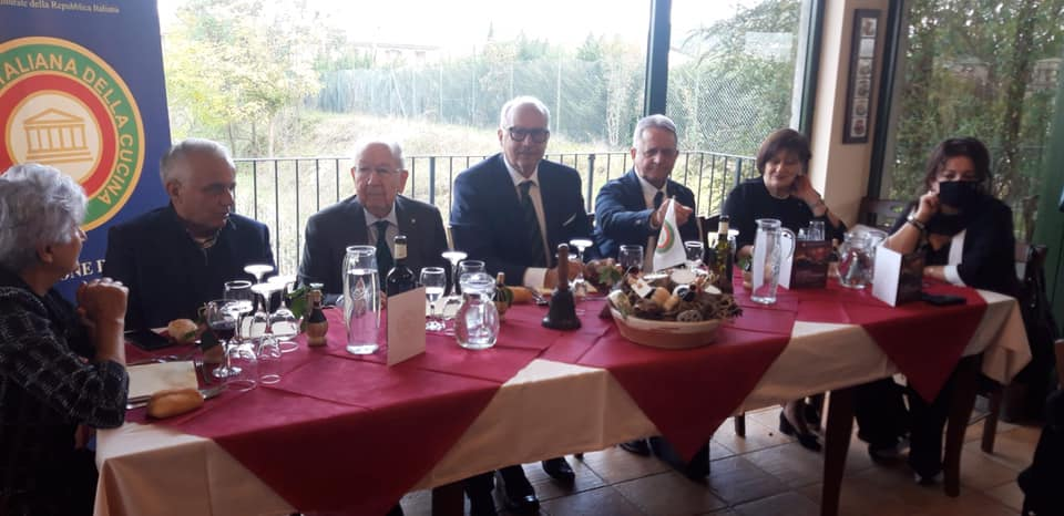 La Delegazione di Macerata ha tenuto la Cena Ecumenica 2021 nel cuore della zona terremotata della provincia e cioè a Camerino, nello storico ristorante “Villa Fornari” (foto 1). Sono stati graditi ospiti della Delegazione l’arcivescovo di Camerino, Mons. Francesco Massara, e il prof. Gianni Sagratini, docente dell’Università camerte, direttore del corso di laurea in Scienze Gastronomiche e della Scuola di Scienze del Farmaco e dei Prodotti della Salute, il quale ha portato il saluto del rettore prof. Claudio Pettinari, impossibilitato ad intervenire. Entrambi gli ospiti sono stati omaggiati con alcuni volumi dell’Accademia Italiana della Cucina, molto apprezzati (foto 2). Il Delegato Ugo Bellesi ha poi consegnato all’Accademica Simonetta Varnelli l’attestato e il distintivo inviato dalla Presidenza in riconoscimento della sua pluriennale iscrizione e dedizione all’Accademia (foto 3). A tutti gli Accademici è stato poi consegnato il volume “Il bosco e il sottobosco” dedicato al tema dell’anno 2021.