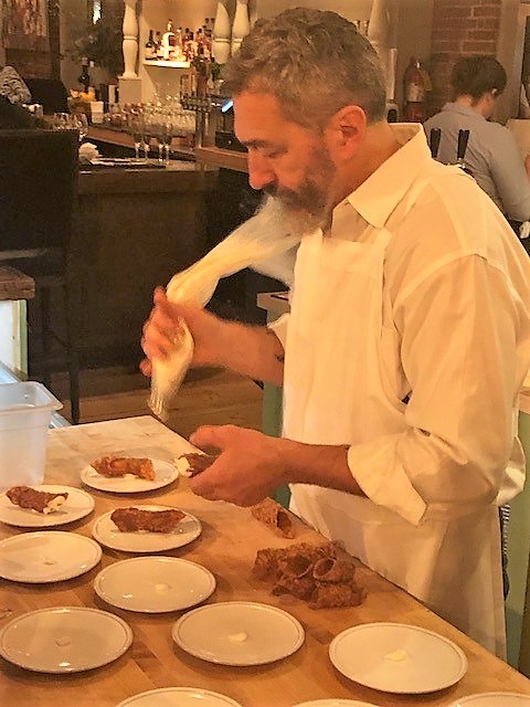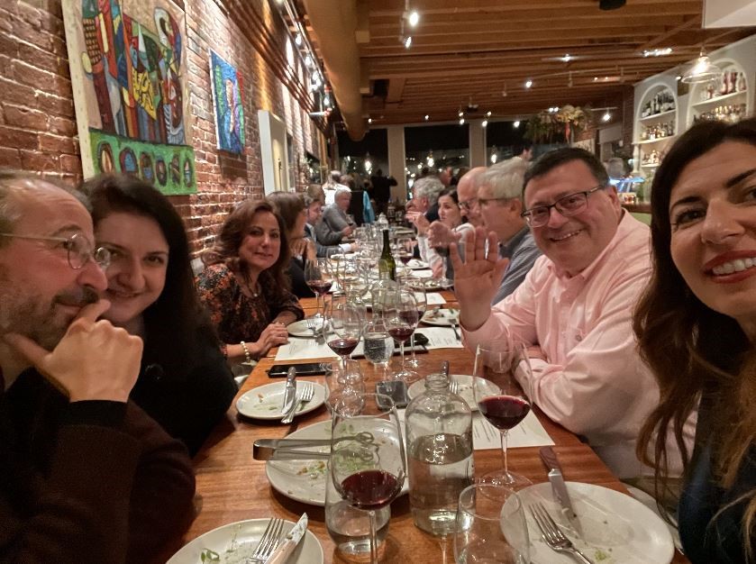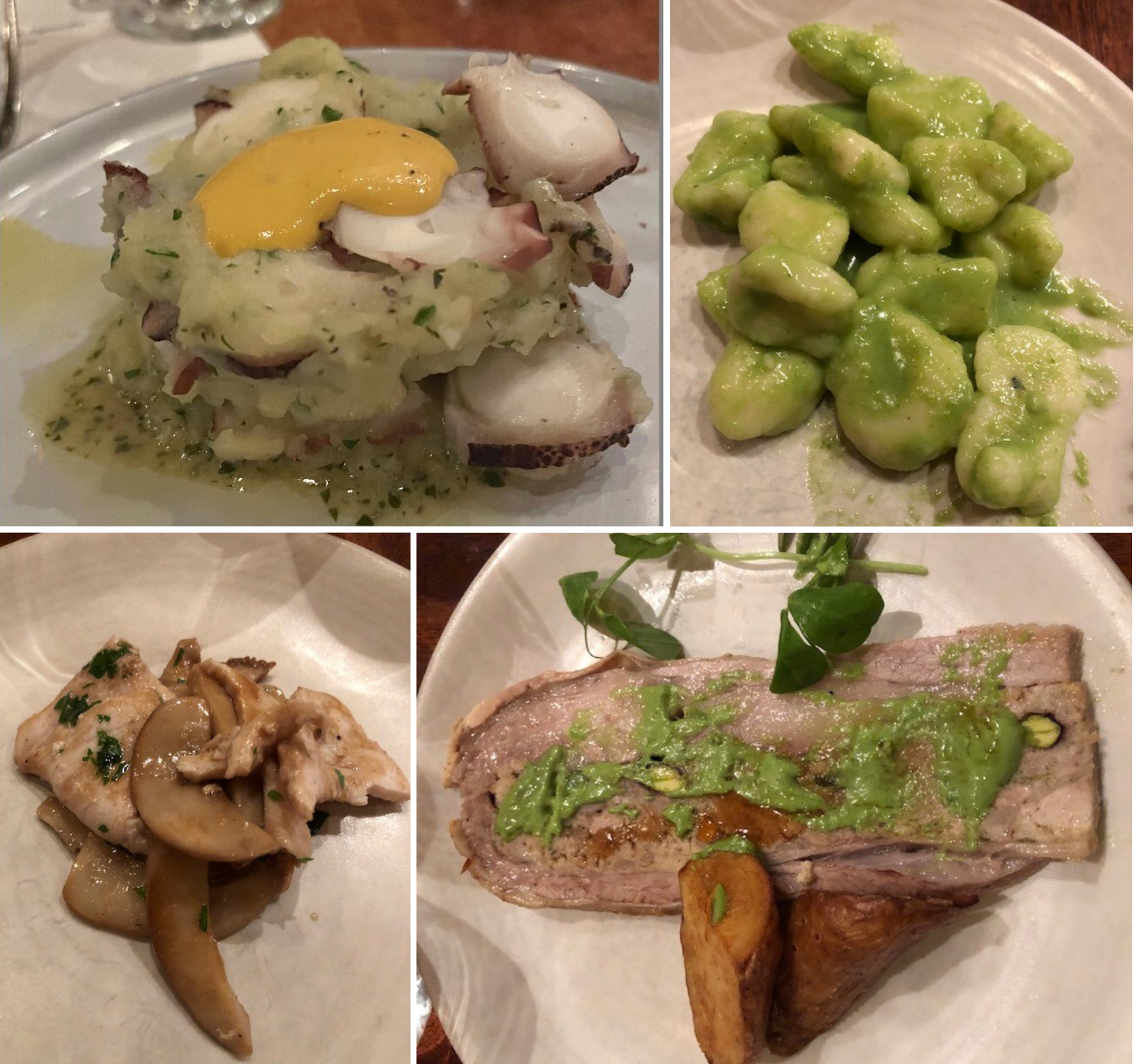 La Delegazione di Boston (foto 1) si è trasferita per la Cena Ecumenica a Portland, nel Maine, per visitare il ristorante “Solo Italiano”, una vera gemma nel panorama Nord Est degli Stati Uniti. Lo chef Paolo Laboa, plurititolato e vincitore di diversi premi internazionali, ha accolto gli Accademici con grande simpatia e affetto e li ha intrattenuti piacevolmente condividendo la sua passione, i suoi segreti, la sua storia e il suo tocco magistrale ( chef in foto 2 conl Delegato Enrico Vietri). La cena è stata improntata su un menu squisitamente genovese, tutti piatti eccellenti e contraddistinti da una sapiente armonia di gusti e ingredienti. Dalla “focaccia di Recco”, alla “Cima alla genovese”, dagli “gnocchi al vero pesto” ai “pansotti al sugo di noci”. Particolare successo hanno riscosso il “tortino al polpo” ed il “pescespada uccelletto ai funghi” (piatti in foto 3). Lo chef ha infine piacevolmente sorpreso gli ospiti accademici con un “fuori programma” finale di cannoli siciliani (foto 4). Diversi membri di lunga data hanno convenuto che è stato l’evento più emozionante e denso di significato nella storia recente della Delegazione.
