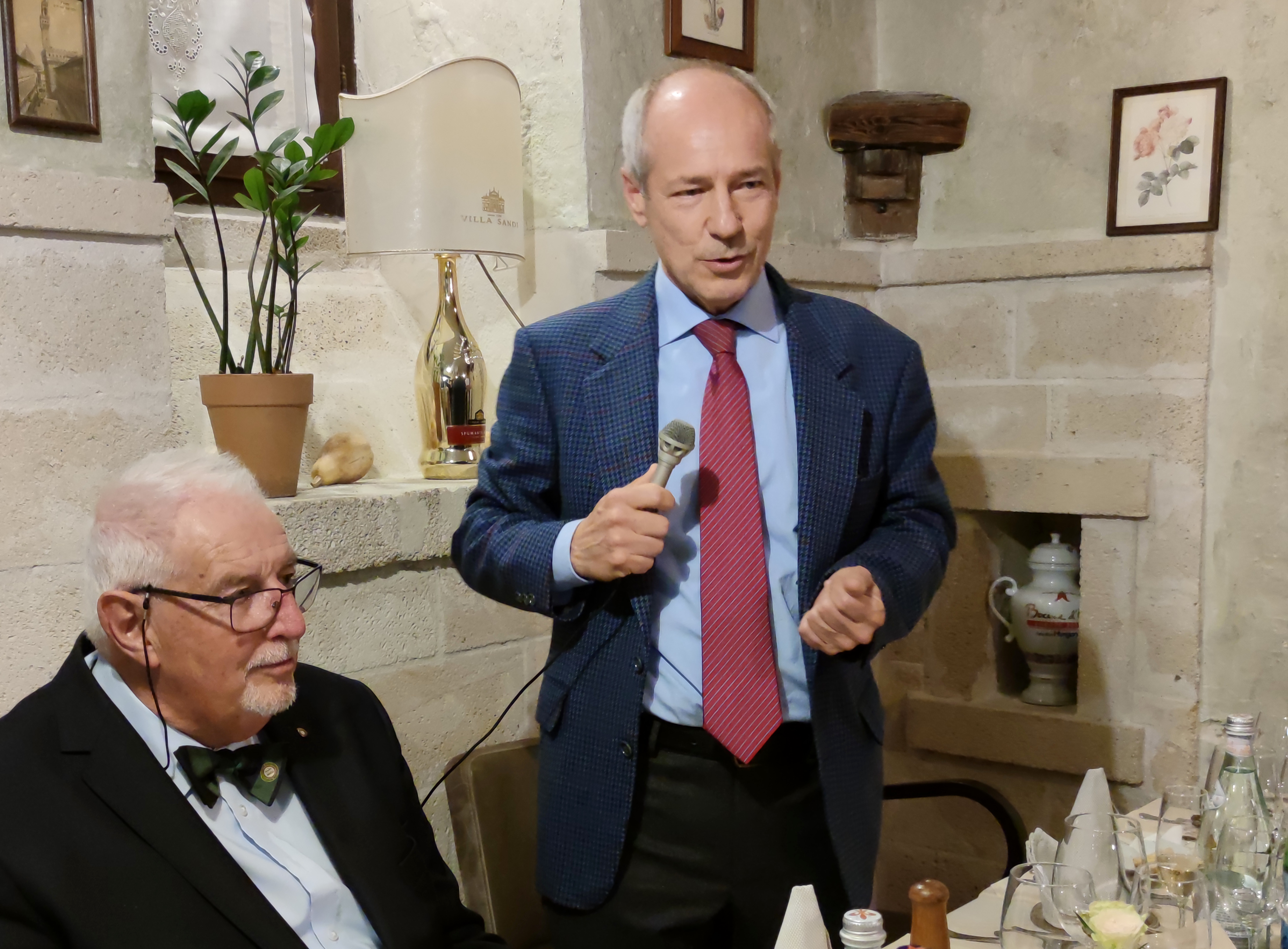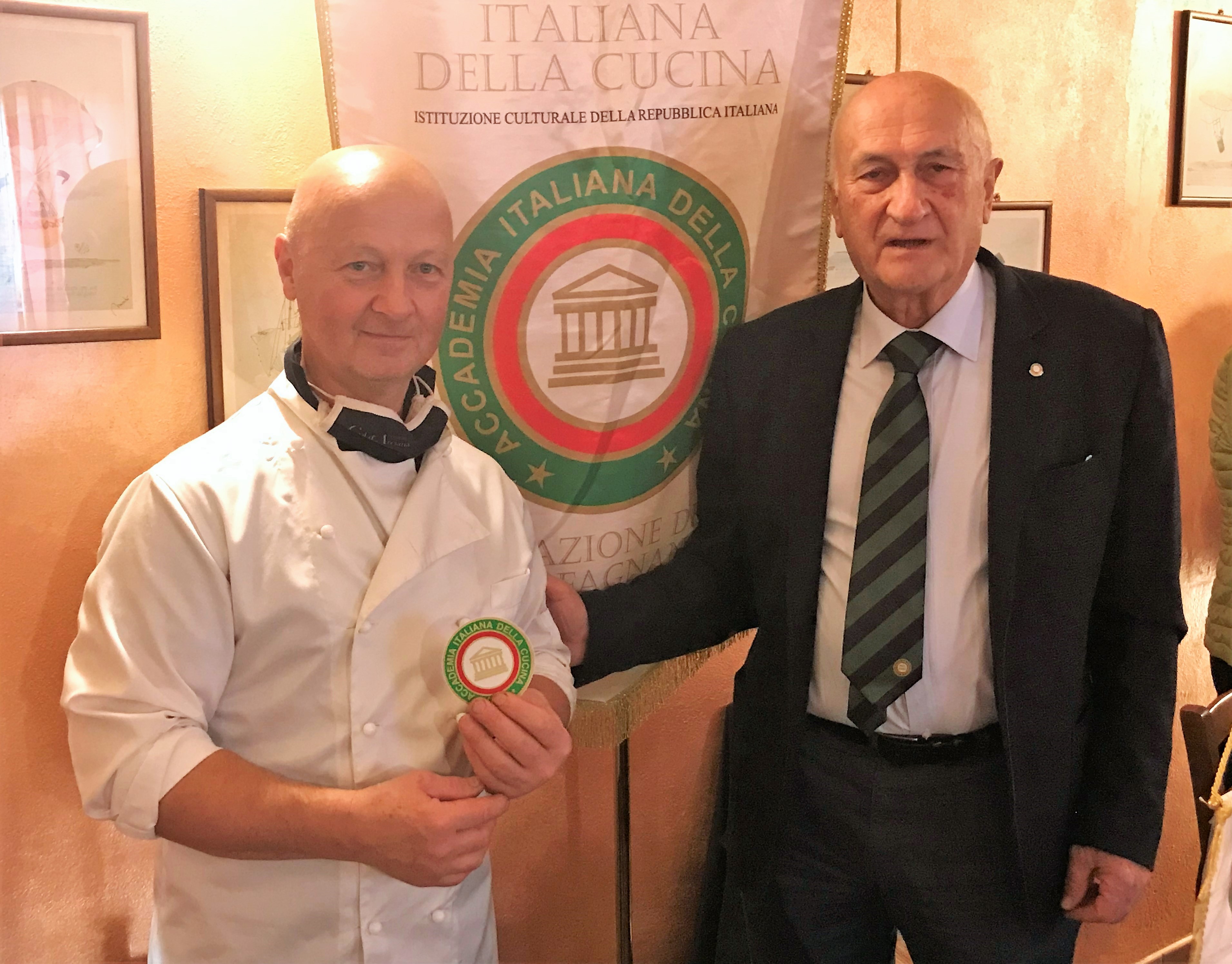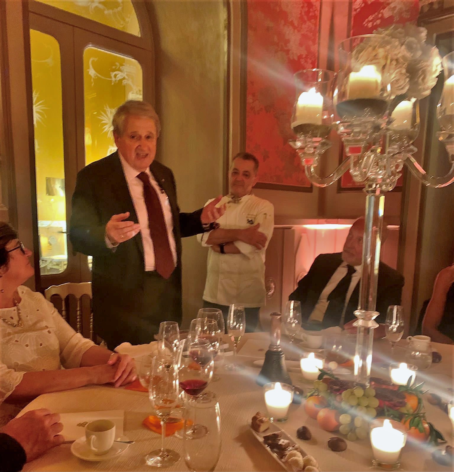 Il Ristorante Krizia costituisce un punto di riferimento importante per chi vuole gustare piatti autenticamente italiani a Budapest e per questo motivo è stato selezionato dalla Delegazione locale per la Cena Ecumenica 2021. Ospite della serata, S.E. il nuovo Ambasciatore Manuel Jacoangeli, che ha aderito con piacere all’invito a partecipare per conoscere la realtà accademica budapestina, cui ha indirizzato un caloroso saluto ((foto 1 e 2 con il Delegato Alberto Tibaldi). Durante la serata il Delegato Tibaldi (foto 3) ha comunicato ai presenti che dal 1° novembre il Vice Delegato Michele Fasciano sarà alla guida della Delegazione. Il Simposiarca Fasciano e lo chef Graziano Cattaneo hanno concordato un particolare menu sul tema ecumenico confermando la ben nota abilità dello chef, con piena soddisfazione dei convenuti. Una particolare menzione per il tortello alla farina di castagne ripieno ai funghi porcini e il medaglione di cervo ai profumi del sottobosco con zucca speziata al forno con burro montato e nocciole (foto 4). Ottimi i vini serviti e il servizio in sala. L’ Accademica Chiara Narder-Mariotto ha tenuto una eccellente relazione sul tema ” La generosità del bosco”. A conclusione della serata un caloroso applauso è stato tributato allo chef e al suo staff.