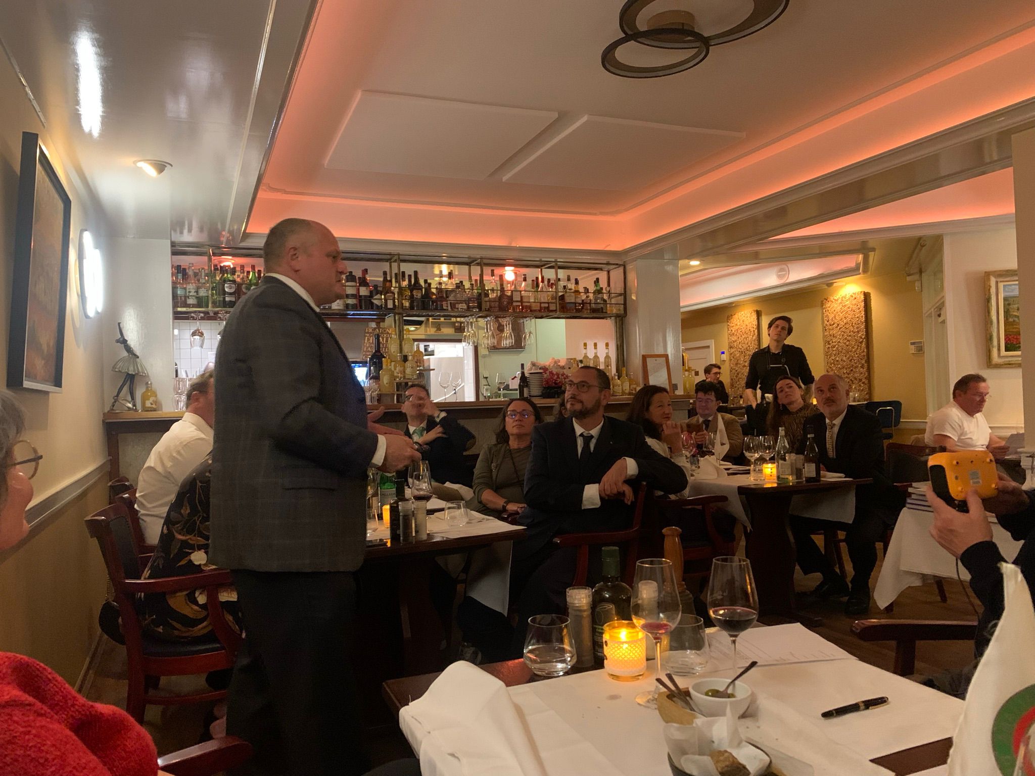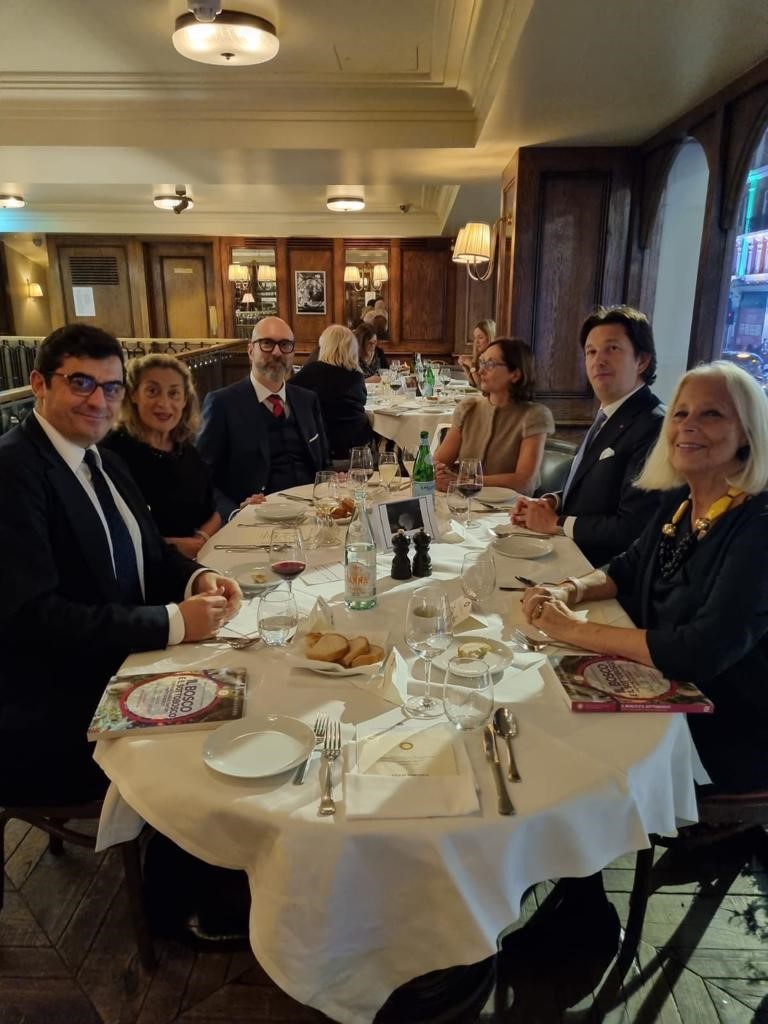 La Cena Ecumenica della Delegazione di Londra presso il ristorante “Teatro della carne-Macellaio” ha visto la partecipazione di ospiti d’onore come il giornalista e scrittore Enrico Franceschini e il precedente CEO di FerreroUK Mario Bruzzone, i quali, dopo un’adeguata introduzione ai prodotti del bosco e del sottobosco da parte del Delegato Maurizio Fazzari, hanno allietato il pubblico con le loro esperienze sul tema della serata. Il cuoco Luciano Nastasi, supervisionato da Roberto Costa, ha espresso soddisfazione e riconoscenza per essere stato coinvolto in un evento conviviale così importante, incentrato sul tema dell’anno scelto dall’Accademia. Molto apprezzati gli stuzzichini e la zuppa, grandi lodi per la scelta dei vini, ben abbinati alle vivande autunnali. L’ambiente particolare, la presentazione elegante e meticolosa, il servizio professionale e affabile sono stati molto graditi. Simposiarche della serata, le Consultrici della Delegazione Etta Carnelli e Silvia Mazzola, che con il loro impegno hanno reso possibile lo svolgimento di questo evento tanto atteso.