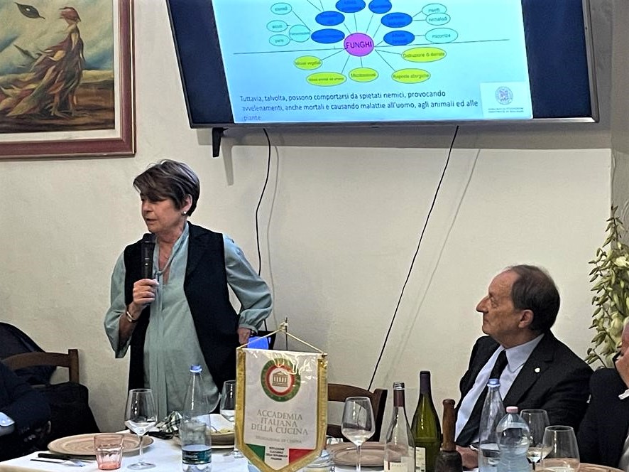La cena ecumenica della Delegazione di Cesena si è svolta presso il “Molino d’Ortano” di Linaro di Mercato Saraceno, agriturismo situato in un ampio parco naturale dell’Appennino cesenate. Nel corso della riunione conviviale la prof.ssa Alessandra Zambonelli dell’Università di Bologna ha tenuto una brillante relazione sul tema “Funghi e tartufi dal bosco alla tavola” (Foto 1). Dopo il tradizionale aperitivo di benvenuto, è stato servito un ricco menu a base di tartufi (foto 2), funghi porcini (foto 3) e altri prodotti del bosco, tutti di provenienza locale. Al termine della serata, molto riuscita e partecipata, il Delegato Claudio Cavani ha consegnato alla titolare del Molino d’Ortano, Ombretta Farneti, il guidoncino della Delegazione (Foto 4).