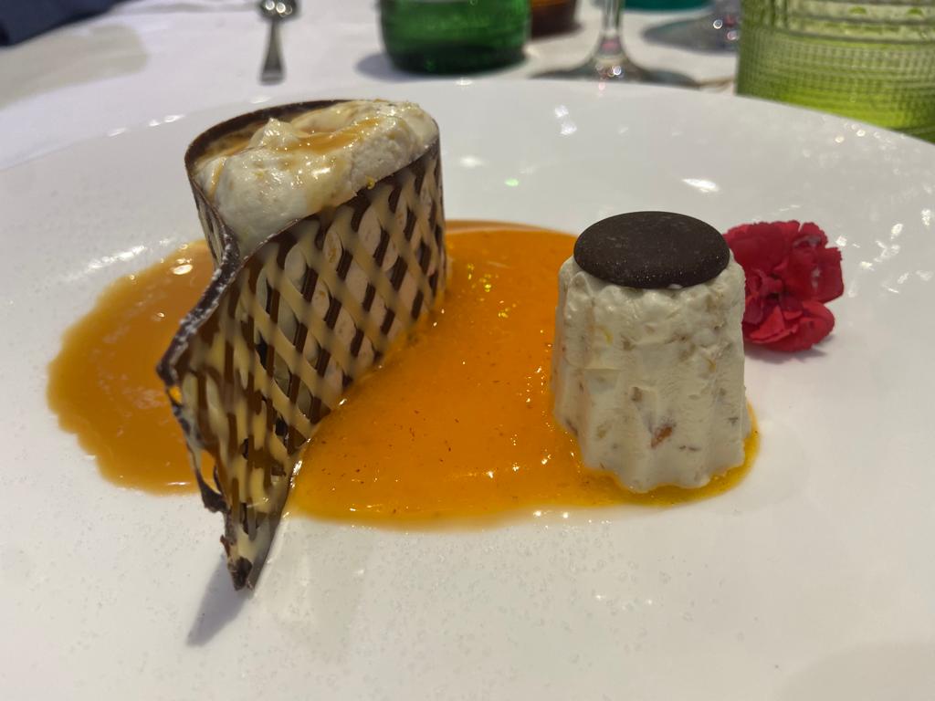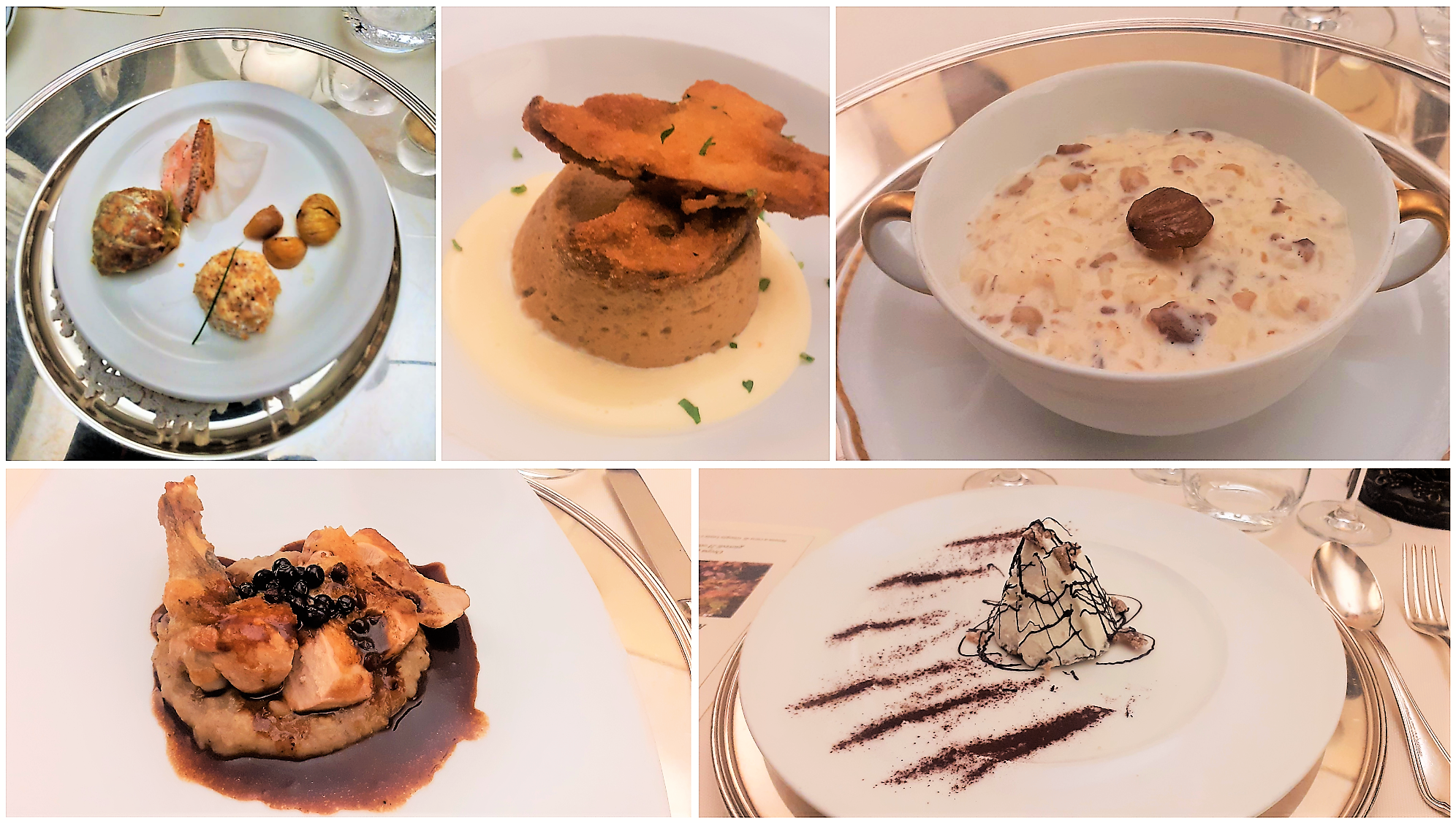 La Delegazione Lariana si è ritrovata per la Cena Ecumenica 2021 presso la Terrazza Gualtiero Marchesi del GH Tremezzo. Eccellenti i piatti serviti, cucinati con maestria dallo chef Osvaldo Presazzi, assistito da una compagnia carica di competenza ed entusiasmo. Il tema è stato rispettato per l'intero percorso della cena, caratterizzata da un perfetto servizio di sala, in un ambiente fiabesco, illuminato da un profluvio di candele e arricchito da frutti di bosco e mandaranci sapientemente "abbandonati" sulle mense. Presentazione e servizio impeccabili. Foto 1 e 2. Il Delegato Enzo Pomentale con lo chef Osvaldo Presazzi. Foto 3. Panoramica dell'elegante sala. Foto 4. Dal menu: tortelli di faraona mitrata stufata con burro e tartufo nero; guancia di vitello con finferli e castagne.