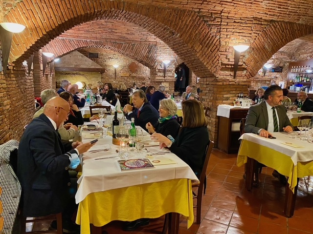 Gli Accademici della Delegazione Cuneo-Saluzzo ed i loro graditi ospiti si sono incontrati per celebrare la Cena Ecumenica presso il ristorante "Da Matteo" di Narzole (CN). Il menu, curato dal Simposiarca Michele Gregorio, ha rispecchiato fedelmente il tema dell’anno. Molto apprezzata la carne all'albese, impreziosita dal tartufo bianco che, nel corso di questa annata, rappresenta una vera rarità. Il prezioso tubero è comunque stato reperito in quantità sufficiente grazie all'impegno dello chef Matteo Gandino. Ottimo il dessert Monte Bianco di castagne. Nel corso della riunione il Delegato Ferruccio Franza e gli Accademici hanno dato il benvenuto al neo Accademico Oscar Benessia. Gradito ospite della serata il Tesoriere della Delegazione di Muggia-Capodistria Augusto Debernardi, accompagnato dalla gentile signora. Nelle foto alcuni momenti del riuscito convivio che ha raccolto il favore convinto dei partecipanti.