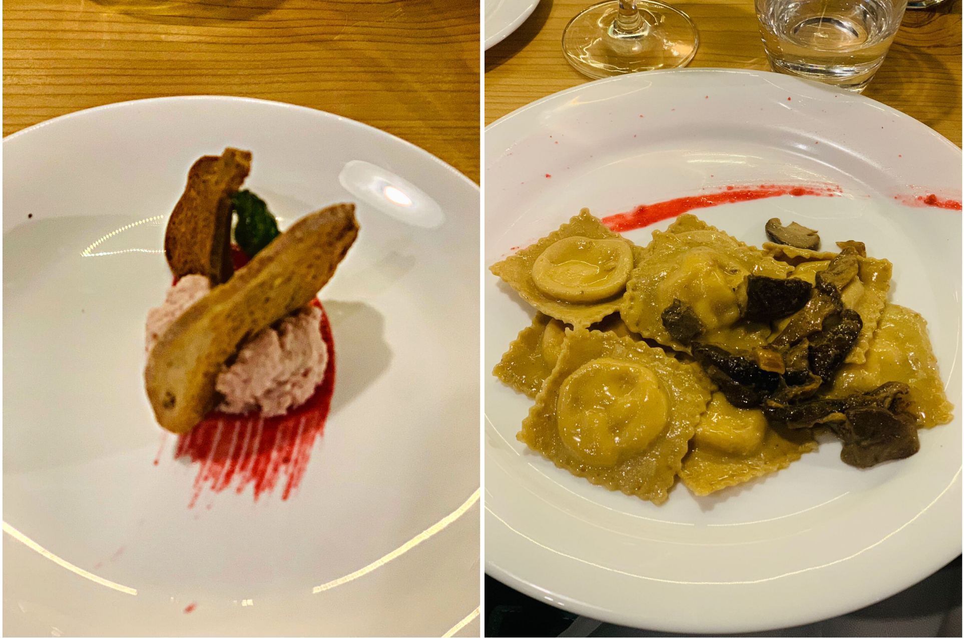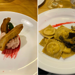 La Delegazione di Cortina d’Ampezzo ha scelto quest’anno la locanda “Al Capriolo” di Vodo di Cadore per celebrare la cena ecumenica: è questo uno dei ristoranti più tradizionali della zona che ha nella sua cucina una particolare predilezione per i prodotti del bosco e del sottobosco, tema della serata. Il menu in tavola, seguito dai Simposiarchi Renato Pesavento e Luigi Alverà, è stato un susseguirsi di aromi, profumi, sapori dei boschi. Ha inoltre partecipato alla serata il dott. Michele Da Pozzo, Direttore del Parco Naturale delle Dolomiti d’Ampezzo, che ha raccontato ai presenti di un bosco nuovo creatosi dopo la tempesta Vaia del 2018 che ne ha cambiato orizzonti e territori e che se l’uomo saprà operare saggiamente potrà ritrovare nel tempo l’equilibrio perduto. In questa occasione è stato attribuito il premio “Massimo Alberini” alla signora Rita della “Piccola Gastronomia” di Vodo di Cadore che prepara da sempre con passione i piatti della tradizione, con cura ed amore per i prodotti del territorio. Foto 1. Delegata Monica De Mattia, i Simposiarchi Pesavento e Alverà, dott. Da Pozzo, la signora Rita. Foto 2. La consegna del Premio Alberini. Foto 3-5. Le “fragranze del bosco”; crema di funghi di bosco con panna acida e crostini; tartelletta al saraceno, frutti di bosco e sorbetto al sambuco.