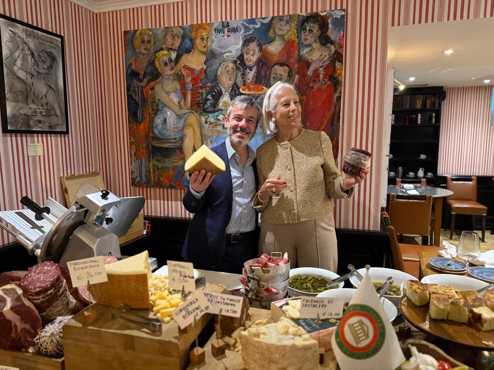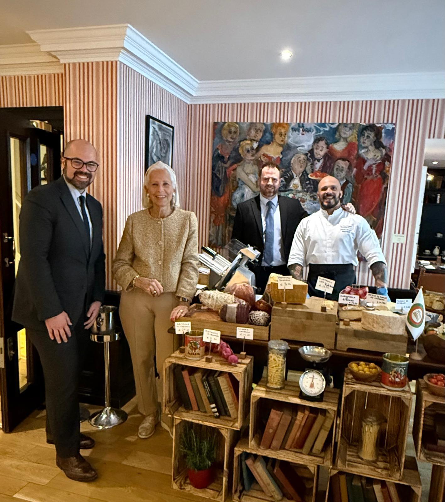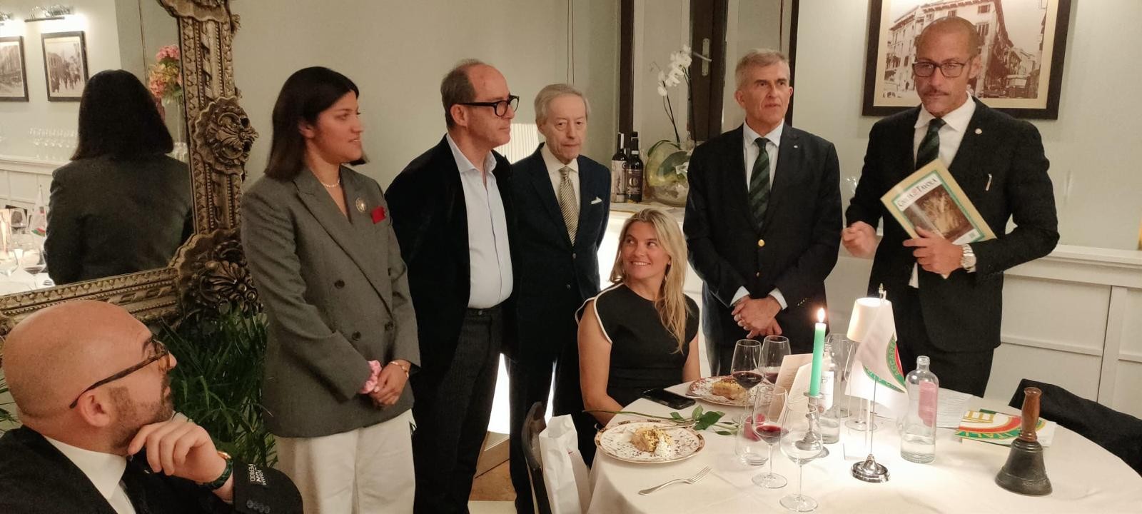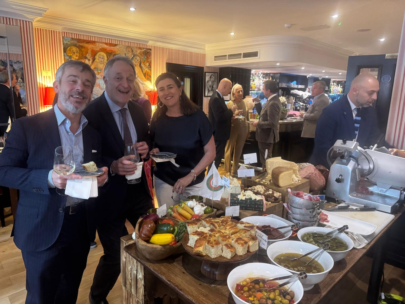 A grande richiesta, la Delegazione di Londra ha organizzato un ricco aperitivo con degustazione di eccellenze gastronomiche e vini italiani selezionati. L’evento si è tenuto presso il ristorante Trattoria del Pelham Hotel, parte del gruppo italiano Starhotels, dove lo chef Alfredo Russo e il suo team hanno accolto con calore gli Accademici, allestendo un angolo ispirato ai vivaci banchi di un mercato rionale italiano. Ad attenderli, una generosa selezione di affettati, sottaceti, formaggi, focacce e un risotto alla milanese con midollo preparato al momento. Il team di cucina ha saputo valorizzare ogni prodotto con spiegazioni puntuali, offrendo agli ospiti un’esperienza interattiva, informale e molto apprezzata. Nel dettaglio, sono stati degustati: taleggio di Sestriere (Piemonte), ubriaco Bollicine di Busto Arsizio (Lombardia), gorgonzola dolce (Lombardia), parmigiano reggiano (Emilia-Romagna), Occelli in foglie di castagno, Valcasotto (Piemonte), bresaola punta d’anca (Lombardia), finocchiona (Toscana), prosciutto San Giovanni (Emilia-Romagna), coppa di lombo (Lombardia). In abbinamento, sono stati proposti ottimi vini italiani: Prosecco Torresella, Soave Classico Balestri Vada e Negroamaro Ciaffa. Numerosi i complimenti ricevuti dalla Simposiarca Vice Delegata Sidney Ross.