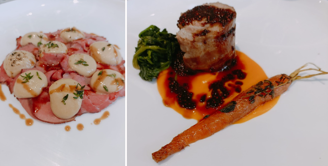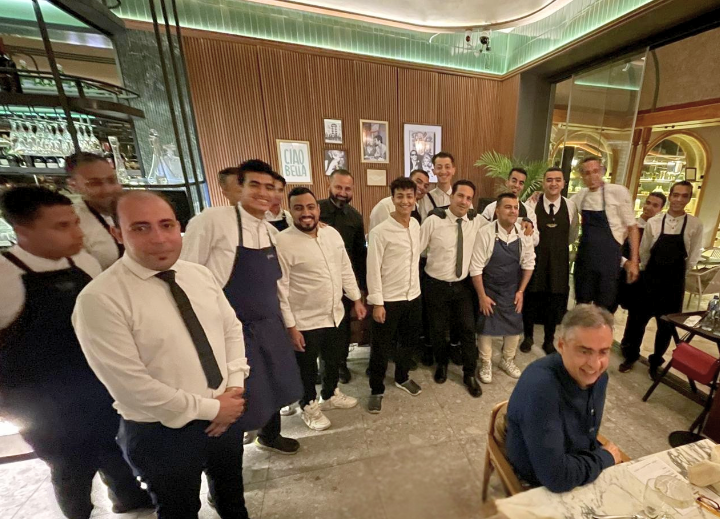Riunione conviviale della Legazione incentrata sul tema "Apericena", scelto dal Simposiarca Domenico De Martinis. L’idea era di superare l’attuale concetto di apericena come soluzione “economica”, verso un’esperienza che unisse un aperitivo moderno con, a seguire, una propria cena, senza soluzione di continuità. Lo chef Giorgio Diana nasce nel 1982 a Cagliari. Si forma presso la scuola IHK di Monaco di Baviera e, dopo varie esperienze e riconoscimenti in Europa, Medio Oriente e Asia, nel 2024 rientra definitivamente al Cairo e fonda “Storia”, unendo raffinatezza mediterranea, tecniche moderne e influenze asiatiche. Il menù, molto articolato, è stato aperto da aperitivi di alto livello per poi transitare verso la vera cena attraverso due amuse-bouche: un involtino di salmone in mantello di zucchine e, a seguire, una tartelletta di tonno rosa marinato. Come antipasto, gli Accademici hanno gustato un waffle di farina di ceci, farcito con crema al formaggio tartufata e sormontato da una tartare di manzo Wagyu. Poi la cena si è articolata intorno a un risotto ai funghi porcini e tartufo nero, mantecato con del foie gras. A seguire, un sorprendente e controverso merluzzo nero in crosta di mostarda, accompagnato da salsa beurre blanc. Per finire, un filetto di manzo locale cotto sottovuoto su una vellutata di patate rosse. Come dessert è stato reinterpretato un tiramisù con dei savoiardi fatti in casa, crema di zabaione e perle di caffè. Servizio e abbinamento vini eccellente.