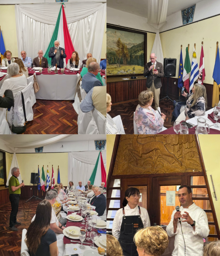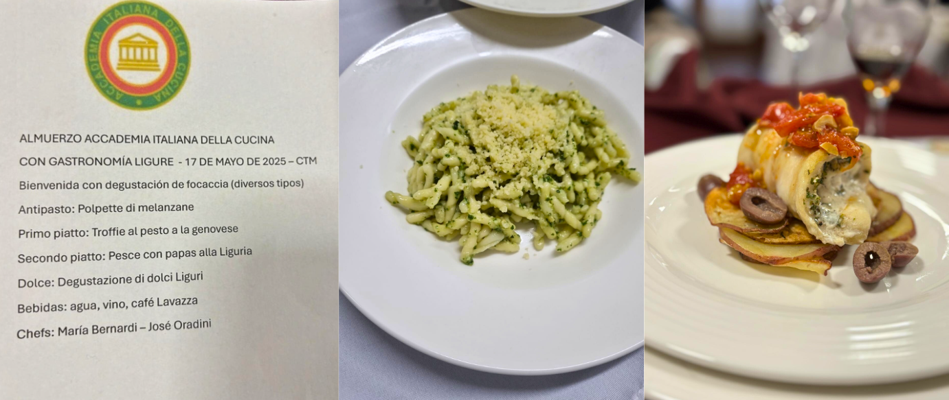 Si è tenuto a Montevideo un evento conviviale della Delegazione locale dell’Accademia Italiana della Cucina, organizzato con il patrocinio del Circolo Ligure e in collaborazione con il Círculo Trentino di Montevideo, che ha ospitato un pranzo dedicato alla tradizione gastronomica ligure. La cucina, curata da María Bernardi (presidente del Circolo Trentino di Colonia) insieme allo chef José Oradini, ha proposto un ricco menù ligure con specialità come focacce assortite, trofie al pesto, piatti a base di pesce e un’accurata selezione di dolci tipici. Sono intervenuti: l'Ambasciatore d'Italia, dott. Fabrizio Petri, il Delegato dell'Accademia a Montevideo Jorge Zás, la dott.ssa Pilar Rodríguez Sanguinetti in rappresentanza del Circolo Ligure e lo scrittore e ricercatore Renzo Groselli, attualmente impegnato in un importante lavoro sull’emigrazione trentina in Uruguay. María Bernardi e José Oradini hanno illustrato il menù proposto, suscitando grande interesse. L’evento si è svolto in un clima di autentica amicizia, condiviso dai numerosi partecipanti, che hanno dimostrato di apprezzare la cucina tradizionale ligure.