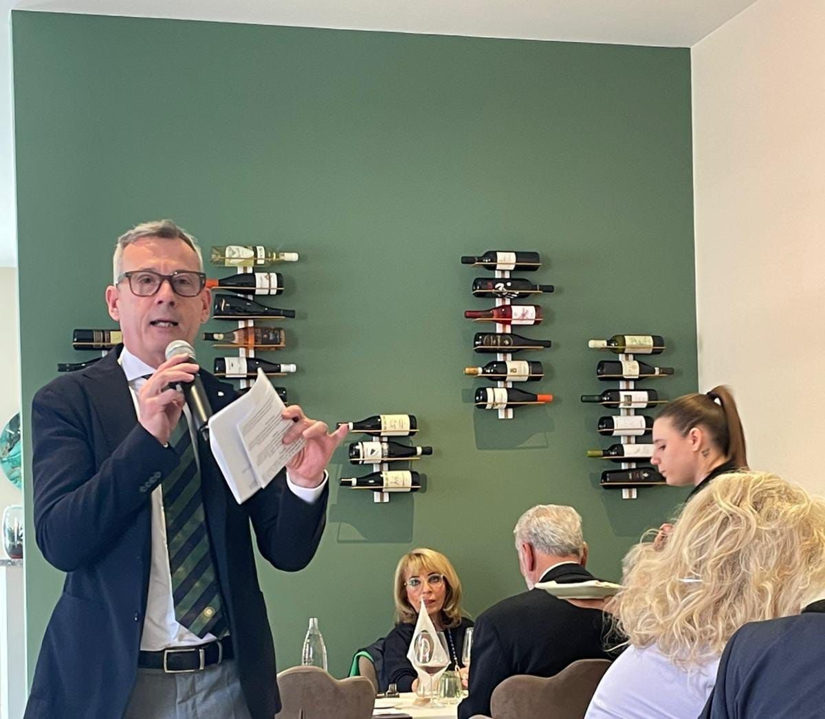 La serata conviviale si è svolta nello splendido scenario del Ristorante Ariva di Paradiso, in un anno particolarmente significativo per il quarantesimo anniversario del sodalizio della Delegazione. Tra gli ospiti d’onore, è stato accolto con grande piacere il nuovo Console Generale d’Italia a Lugano, Uberto Vanni d’Archirafi, accompagnato dalla consorte. La loro presenza ha conferito ulteriore prestigio all’incontro. Nel corso della serata sono stati ufficialmente accolti i nuovi Accademici: Graziano Giacomini e Marina Vergani Bolgiani, già parte della Delegazione di Londra e ora trasferitasi, accompagnata dal marito, l’Accademico Marco Bolgiani. Protagonista dell’incontro è stato l’olio extravergine d’oliva, celebrato come simbolo di cultura gastronomica e identità territoriale. A guidare la degustazione, due ospiti d’eccezione: Maria Giovanna Paccapelo, titolare dell’Azienda I Quattro, che ha presentato i suoi pregiati oli marchigiani, e Marco Scanu, oleologo di fama internazionale, che ha illustrato con passione le caratteristiche di tre oli selezionati: I Quattro (Marche), Giachi (Toscana) e Planeta (Sicilia). Lo chef Diego Bertona ha proposto un menu esclusivo, ideato per valorizzare al meglio questi prodotti d’eccellenza. Ringraziamenti all’azienda Vini e Distillati Delea Angelo SA, rappresentata da Giorgio Bignotti, e a Philippe Schaerer, General Manager di Tertianum, anch’egli presente all’evento. Una serata intensa e raffinata, vissuta all’insegna della convivialità accademica e della passione per la buona tavola.