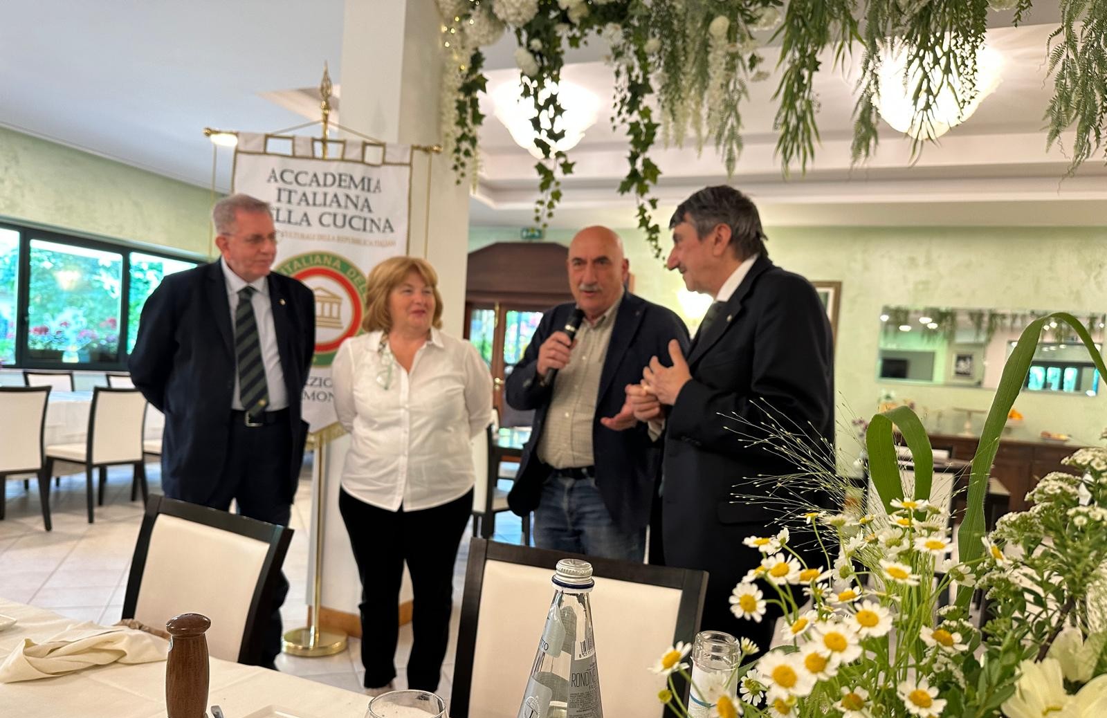 È stata una festa di sapori, ricordi e amicizia quella di sabato 17 maggio all’Hotel Maga Circe di San Felice Circeo, per i 40 anni della Delegazione di Latina dell’Accademia Italiana della Cucina. Un anniversario sentito e partecipato, nel luogo dove tutto ebbe inizio nel marzo 1985. Dodici soci fondatori, guidati da Benedetto Prandi, diedero vita al primo convivio, aprendo una nuova pagina culturale e gastronomica per la provincia pontina. Oggi quell’intuizione è diventata un riferimento autorevole. Il Delegato Gian Luigi Chizzoni e il Delegato Onorario Prandi hanno accolto amici e Delegati da tutto il Lazio. Il cuore dell’evento è stato il momento conviviale: un menù di mare curato dalla famiglia Superti, seguito da una scenografica torta con il logo dell’Accademia. A ricordo, una pubblicazione con documenti e foto ha raccontato 40 anni di impegno nella valorizzazione della ristorazione locale. Premiate anche aziende artigianali e produttori del territorio, veri custodi del sapere alimentare pontino. Ricordate le pubblicazioni come Latina in Cucina di Adriana Vitali Veronese e La Gastronomia dei Latticini di Benedetto Prandi. Il Delegato ha ricordato con emozione tutti coloro che hanno contribuito a questo percorso, unendo generazioni nel nome della cultura gastronomica. L’anniversario non è stato solo celebrazione del passato, ma rilancio degli obiettivi futuri, nella consapevolezza che la cucina è racconto, memoria e condivisione.