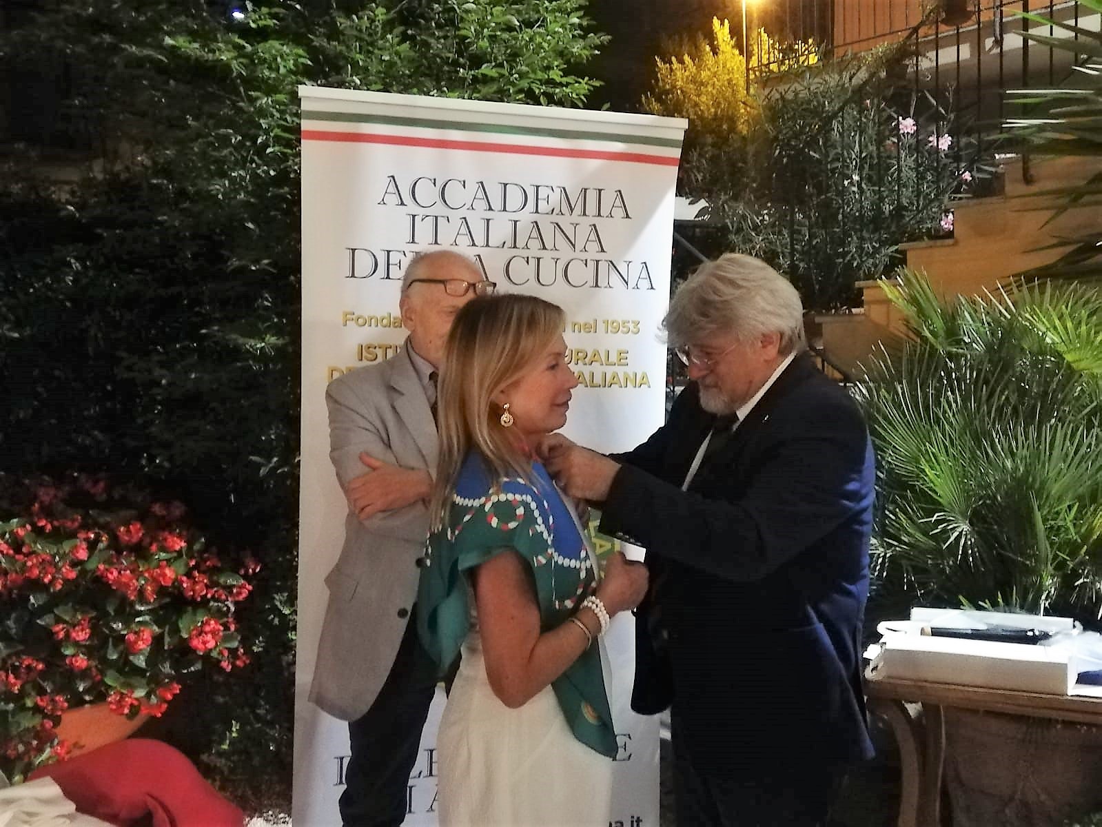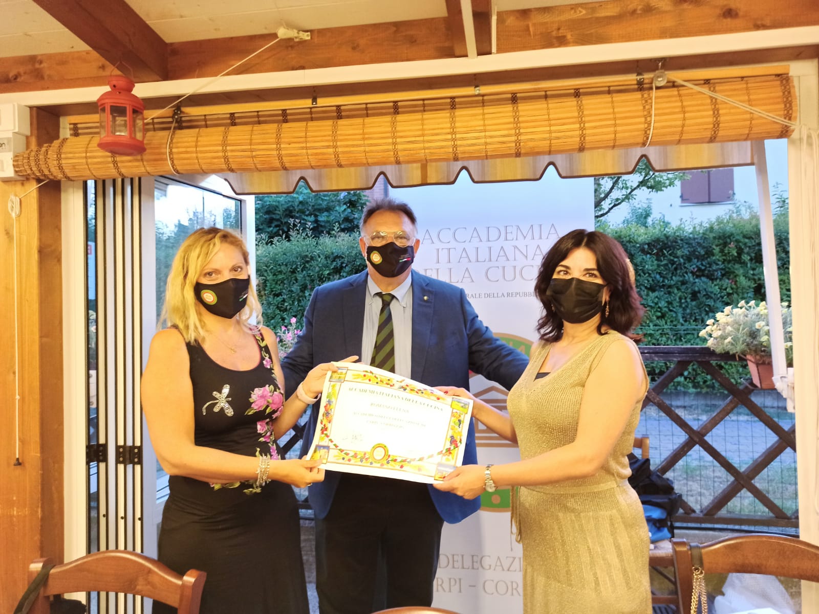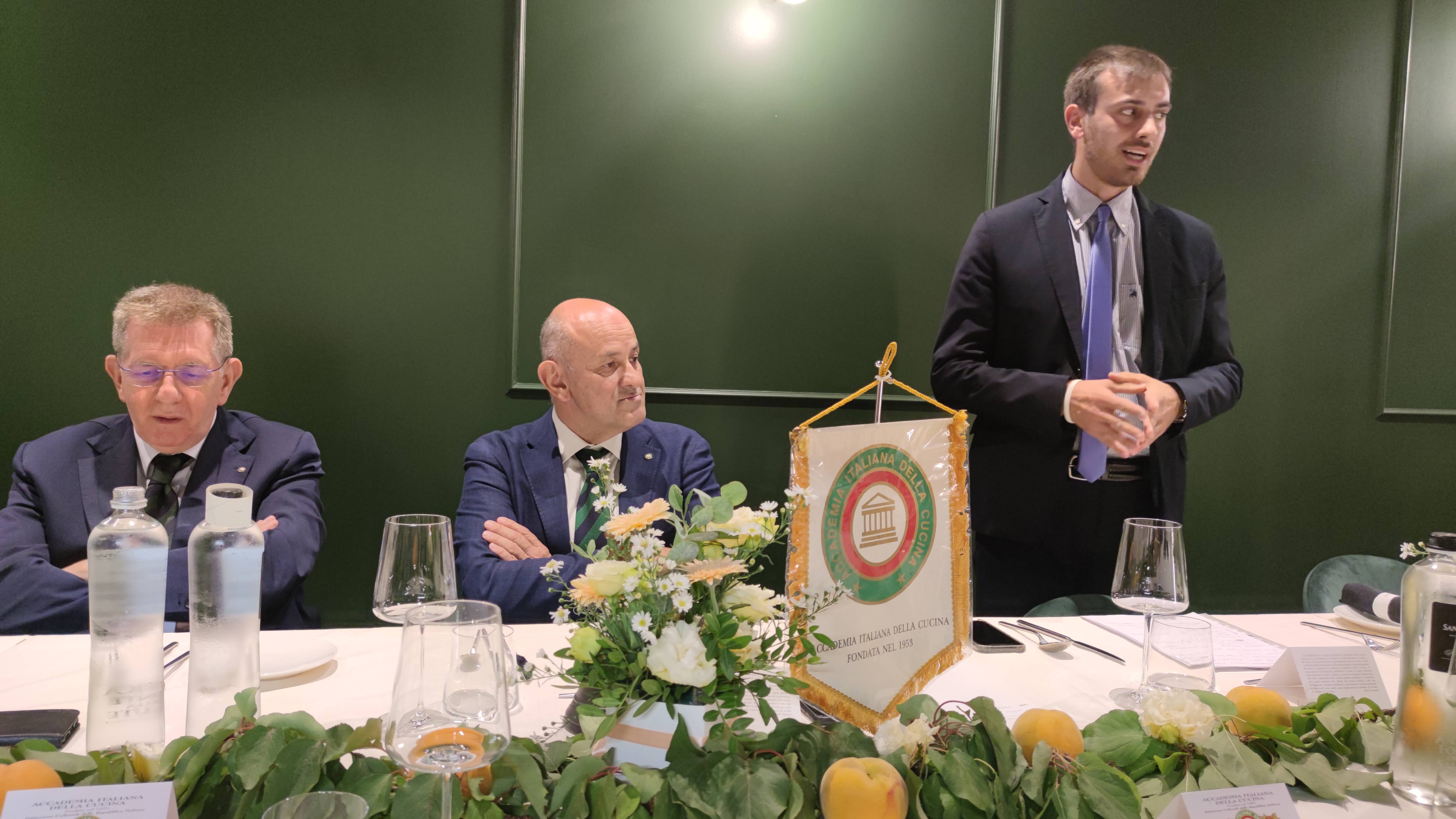 Si è tenuta la cerimonia per la consegna dei prestigiosi premi dell’Accademia proposti negli ultimi due anni dalla Delegazione di Fermo, alla presenza di autorità locali e accademiche e di importanti ospiti. La premiazione, svoltasi presso Villa Bonaparte a Porto san Giorgio, ha visto la partecipazione di S.E. il Prefetto di Fermo V. Filippi e del già Prefetto S.E. E. Zarrilli, del vice Prefetto F. Martino, dei sindaci N. Loira (Porto San Giorgio), P. Calcinaro (Fermo), I. Bascioni (sindaco di Belmonte e Presidente della Marca Fermana), G. Cannella (Campofilone), A. Terrenzi (Sant’Elpidio a Mare) e di S. Rafaiani, consigliere delegato dal Comune di Amandola. Per l’Accademia erano presenti il Vice Presidente vicario M. D’Alessio, il CT Marche S. Marani, il CT Abruzzo N. D’Auria, il Delegato di Ascoli Piceno V. Ricci e il Delegato di Macerata U. Bellesi. Sono stati premiati: Premio Villani (per la spalletta con osso), azienda Tenuta della Marca di Campofilone; Premio Alberini, azienda Le Spiazzette di Amandola per la coltivazione e la lavorazione in composte e marmellate della mela rosa dei Sibillini e l’azienda Fontegranne di Belmonte Piceno per la produzione di formaggi di latte caprino e vaccino dei propri allevamenti; Premio Nuvoletti, Aurelio Damiani di Fermo, cuoco; Laboratorio Piceno per la Dieta Mediterranea di Montegiorgio. Il Diploma di Buona Cucina è stato assegnato al ristorante “Non ti scordar di me” di Sant’Elpidio a Mare di Samuele Boldrini. Dopo la premiazione si è consumata la riunione conviviale predisposta da Giampiero Giammarini del ristorante “I Piceni” di Ortezzano con un menu ispirato alle più tipiche preparazioni del territorio e con l’impiego dei prodotti premiati. L’Associazione Italiana Sommelier ha curato il servizio dei vini selezionati dal suo presidente Marche Stefano Isidori in accompagnamento ai piatti seviti. L'evento è stato magistralmente orchestrato dalle Simposiarche Anna Maria Ciciretti e Clarissa Marzialetti con la collaborazione delle cerimoniere Maura Raccichini e Nadia Zacchi.