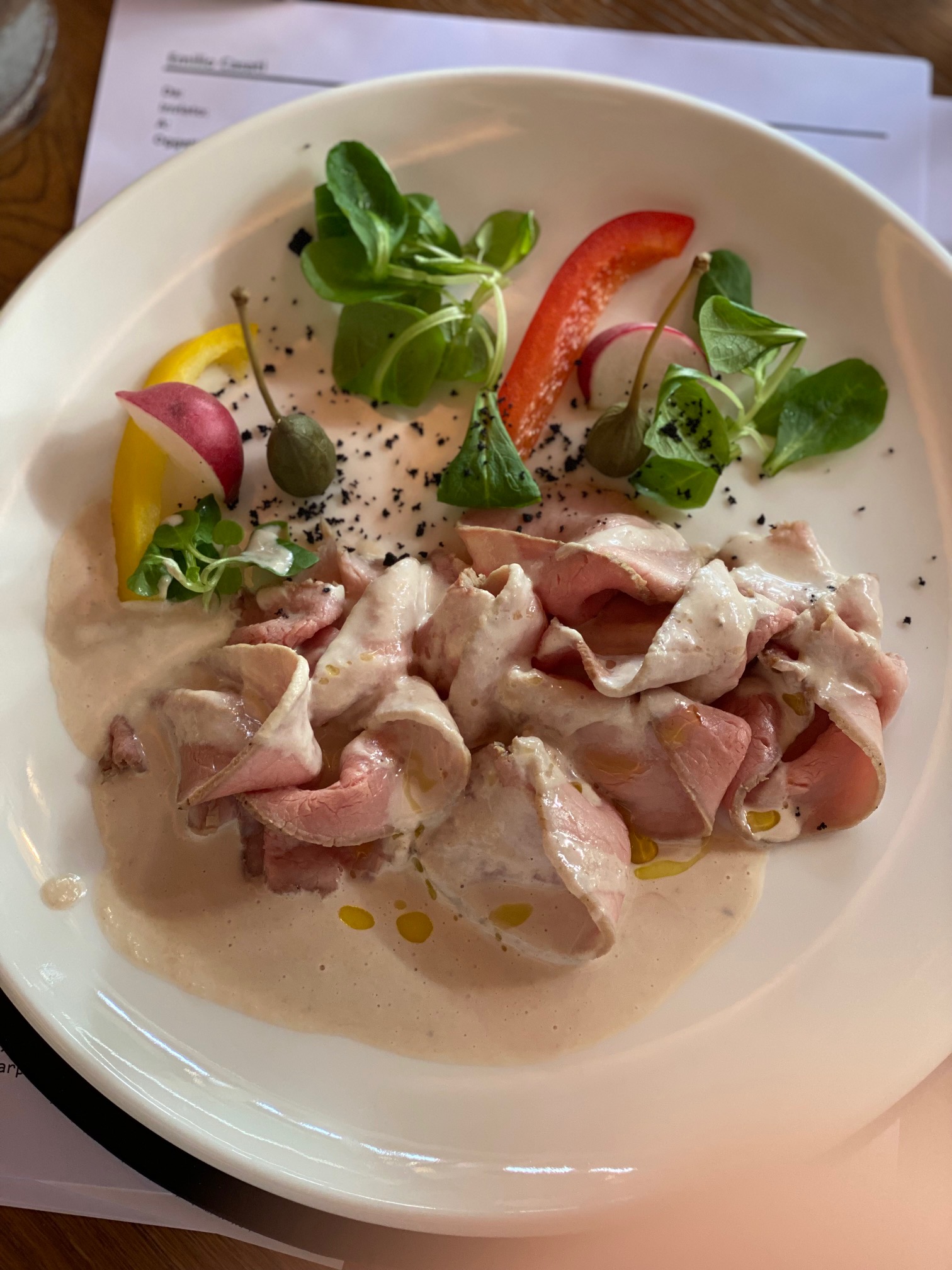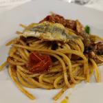 La Delegazione della Svizzera Italiana si è ritrovata da Mirko Rainer che ha recentemente ripreso e rinnovato lo storico ristorante Montalbano a San Pietro di Stabio, con un occhio di riguardo per i sapori autentici, le materie prime e la relazione con i produttori del territorio. Il Simposiarca Uberto Valsangiacomo ha organizzato per gli Accademici uno stuzzicante menu abbinando i vini “Mattirolo” e ha raccontato la storia di Luigi Pagani detto Mattirolo (1813-1902), "bandito sociale del Mendrisiotto". Foto 1. Da sinistra, il Simposiarca Uberto Valsangiacomo, il Delegato Emilio Casati. Foto 2. Il menu. Foto 3. Paccheri al pomodoro San Marzano, basilico fresco e ricotta vaccina. Foto 4. Cuore di magatello di vitello, salsina di ventresca di tonno rosso (JC Mackintosh), terra di olive nere e capperi.